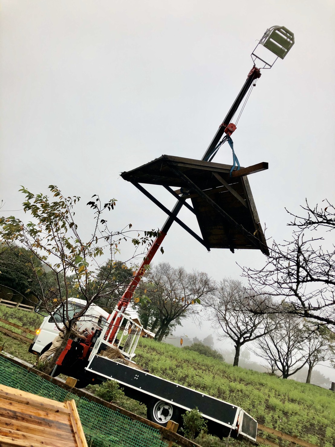 ヨシダお兄さんが畑で刈り取ったツルをものづくり工房に運んでくれた。