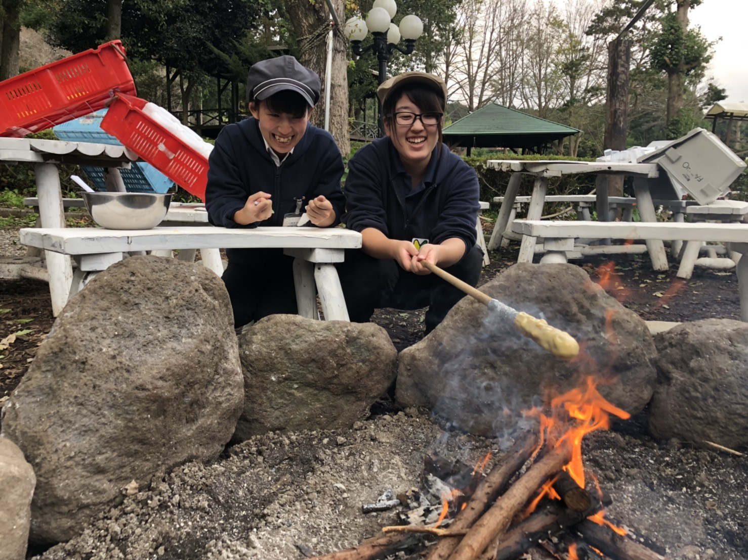 11月からのたき火でケーキ「バームクーヘンづくり」を