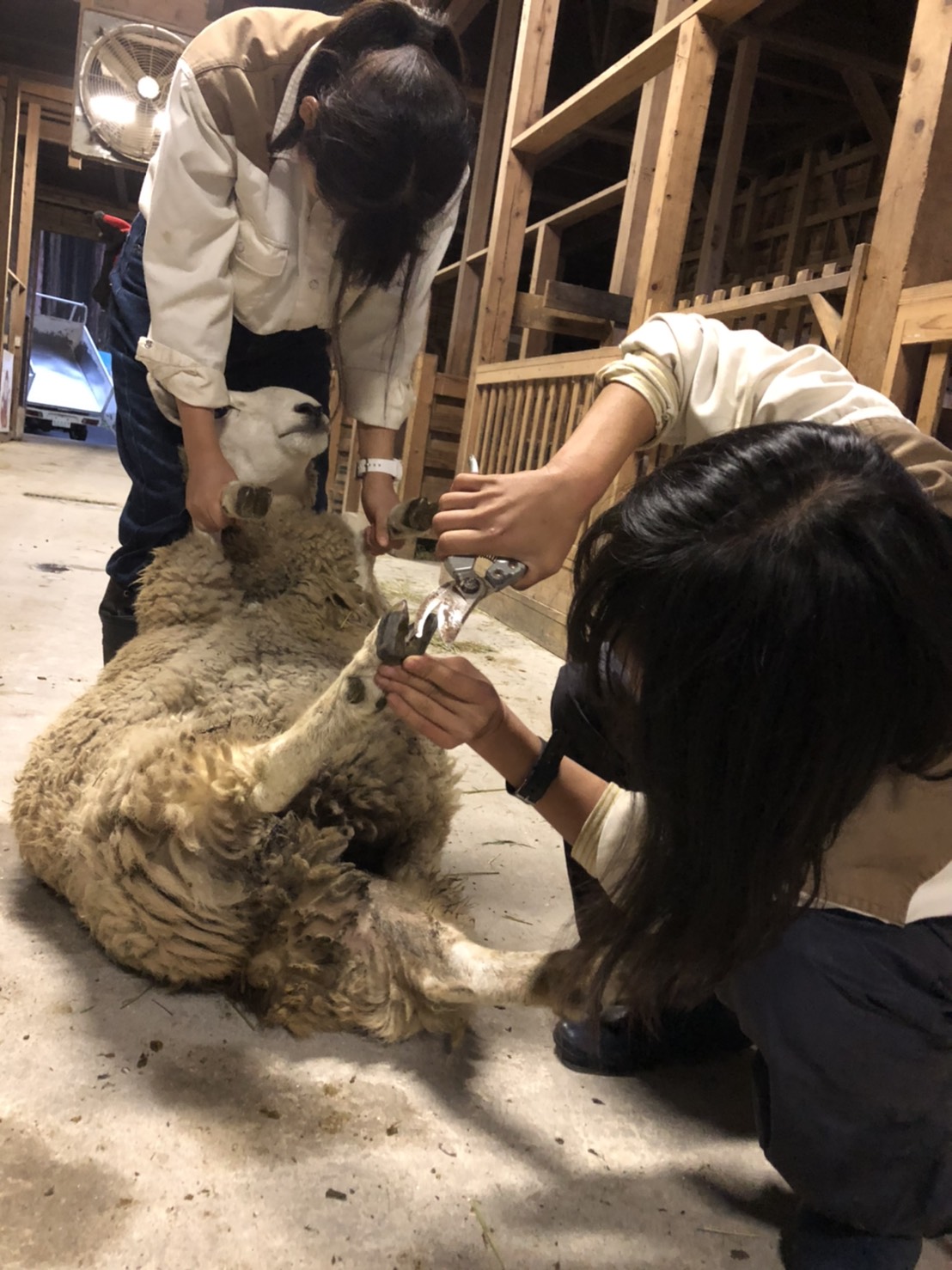 その姿勢で「毛を刈ったり」「蹄を切ったり」します。
