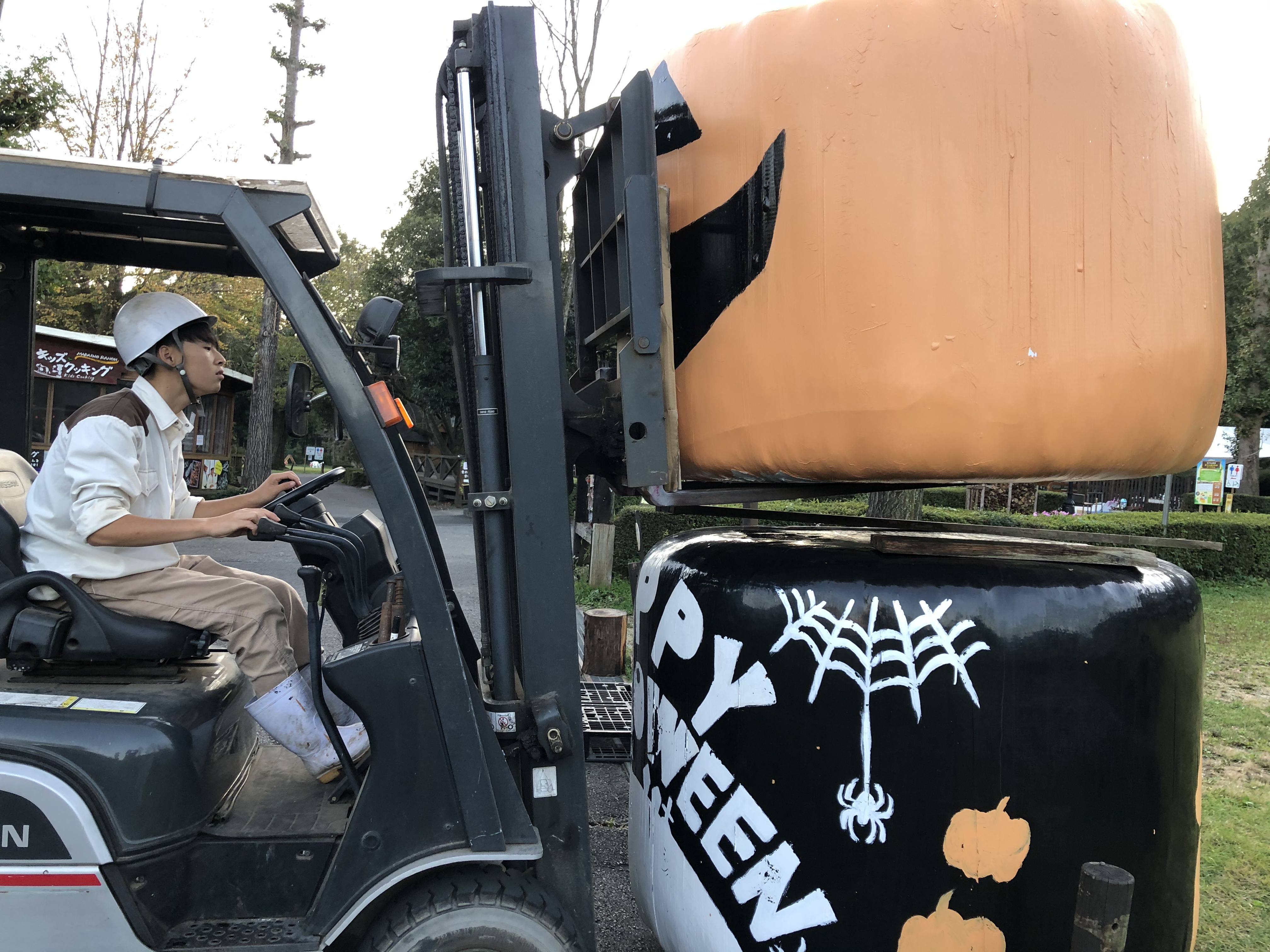 ハロウィンのペイントをしていたサイレージを仕舞う。
