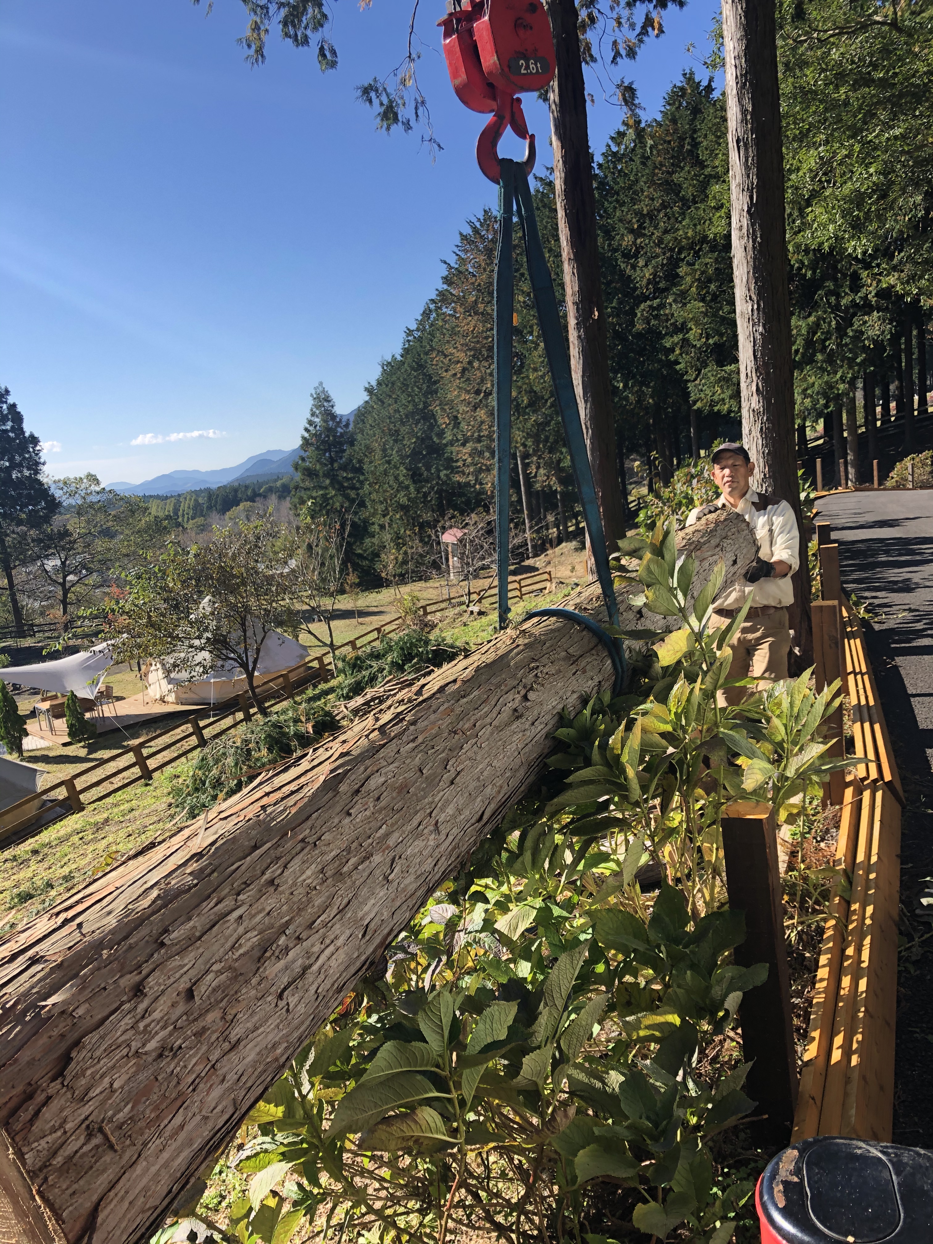 前日に(動画でも載せた)倒した木を、3~4メートルに切って・・・