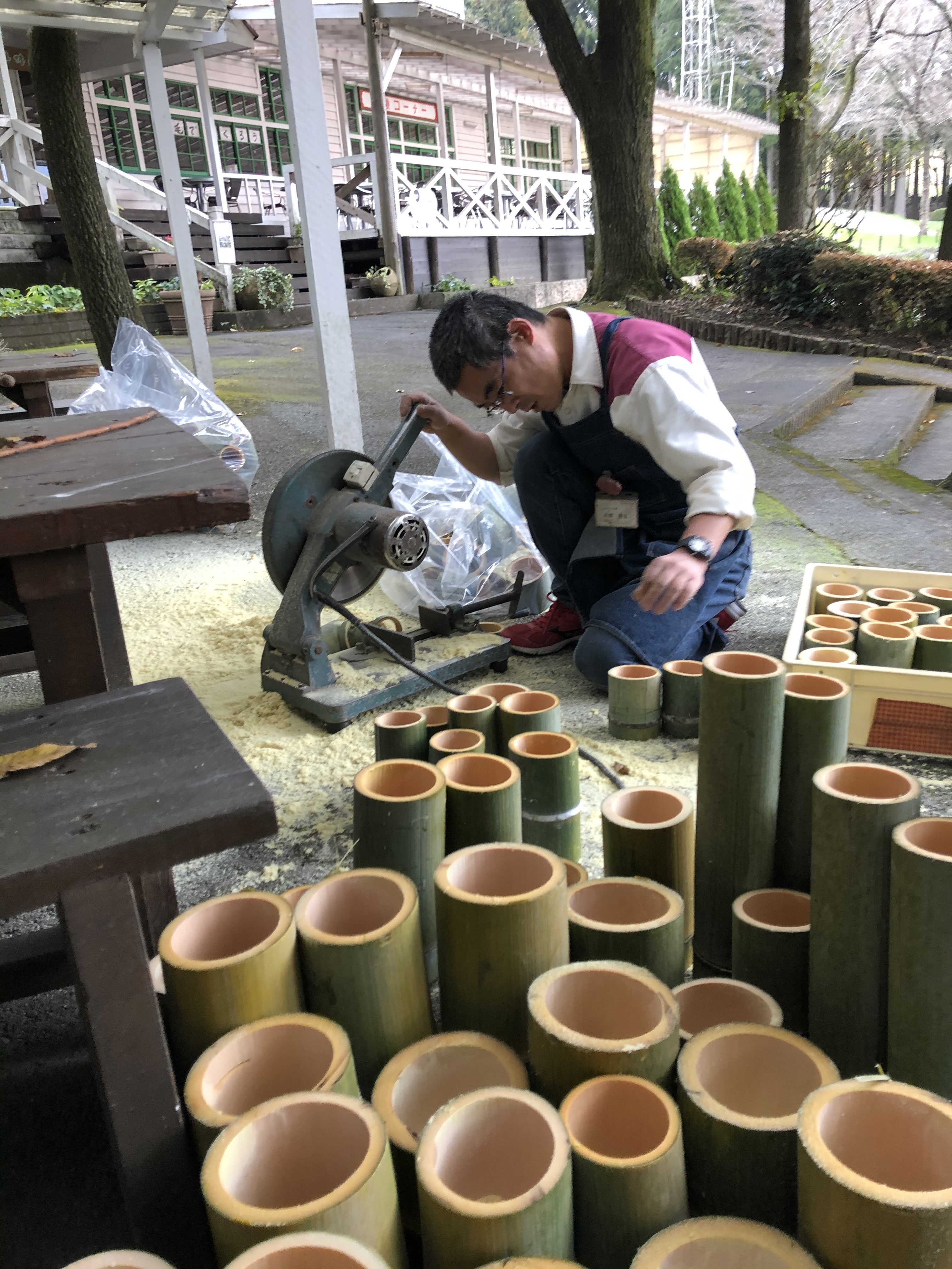 12月の門松づくり体験の準備に余念がないホンマお兄さん。