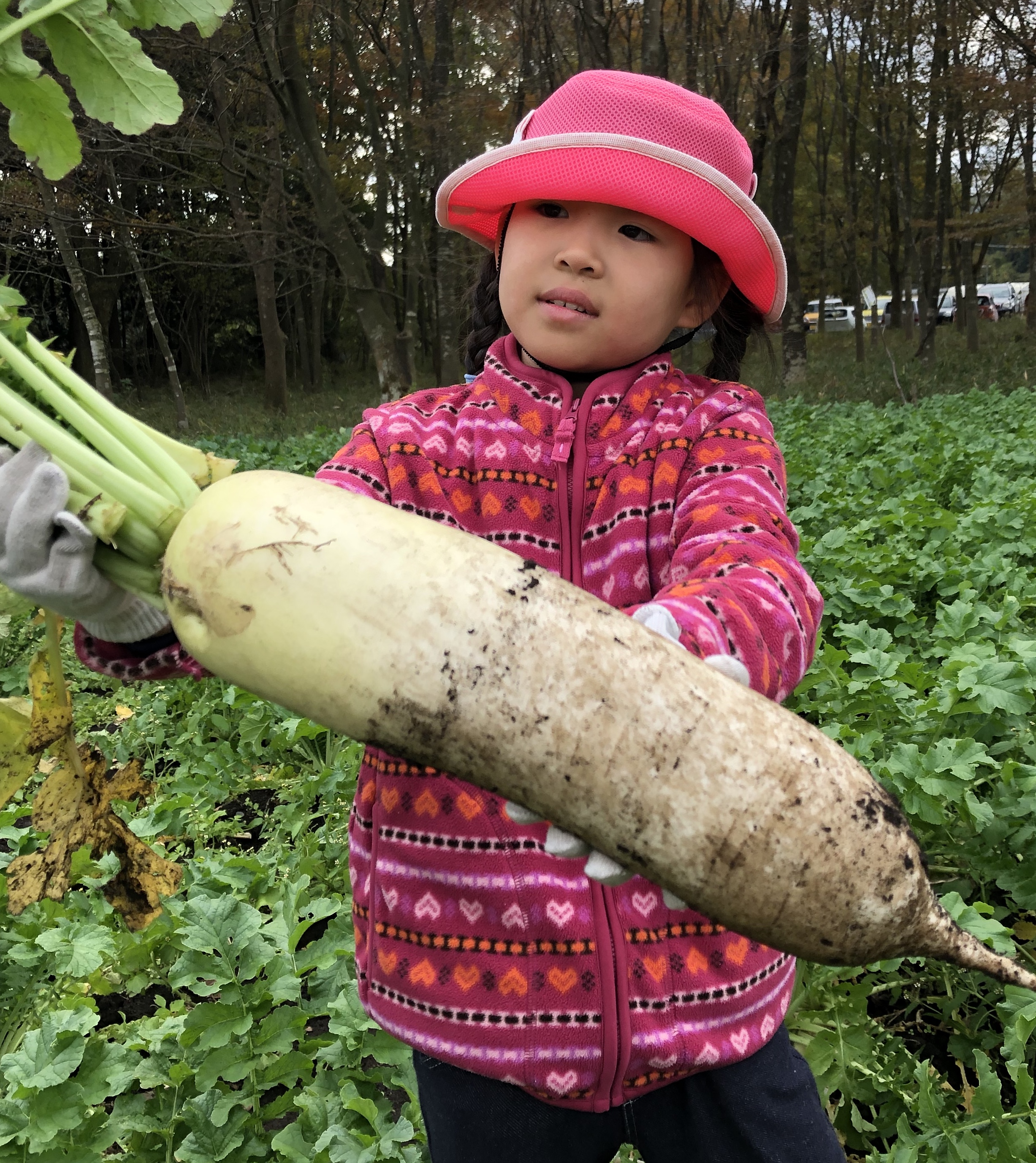 ①大根の葉を全部上にあげて、白い大根がバーンと見えるようにする