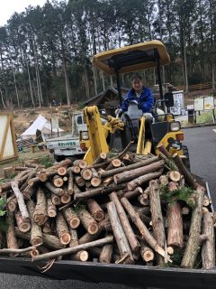 倒した木の、細い枝を運ぶ瞬間に遭遇し