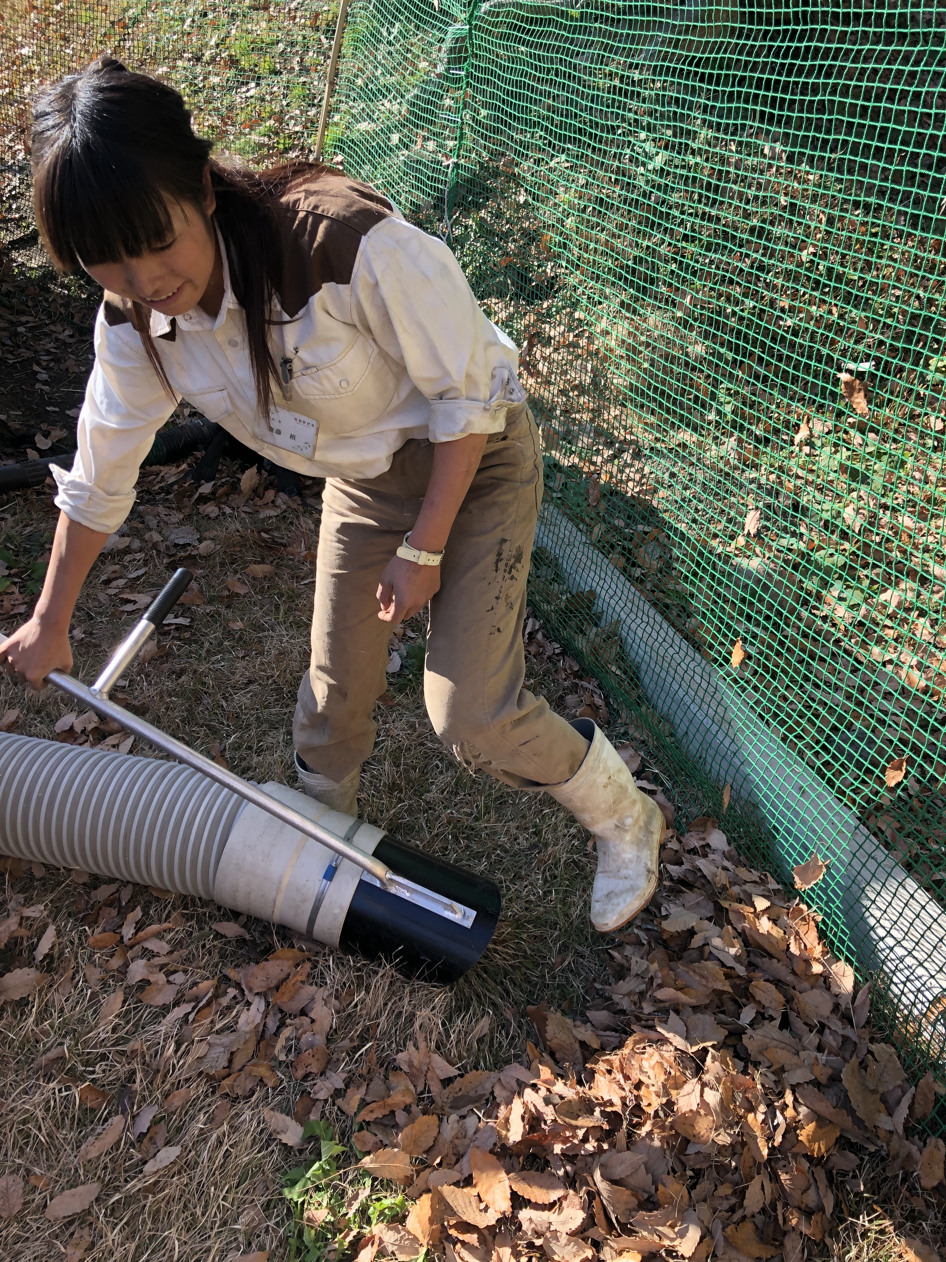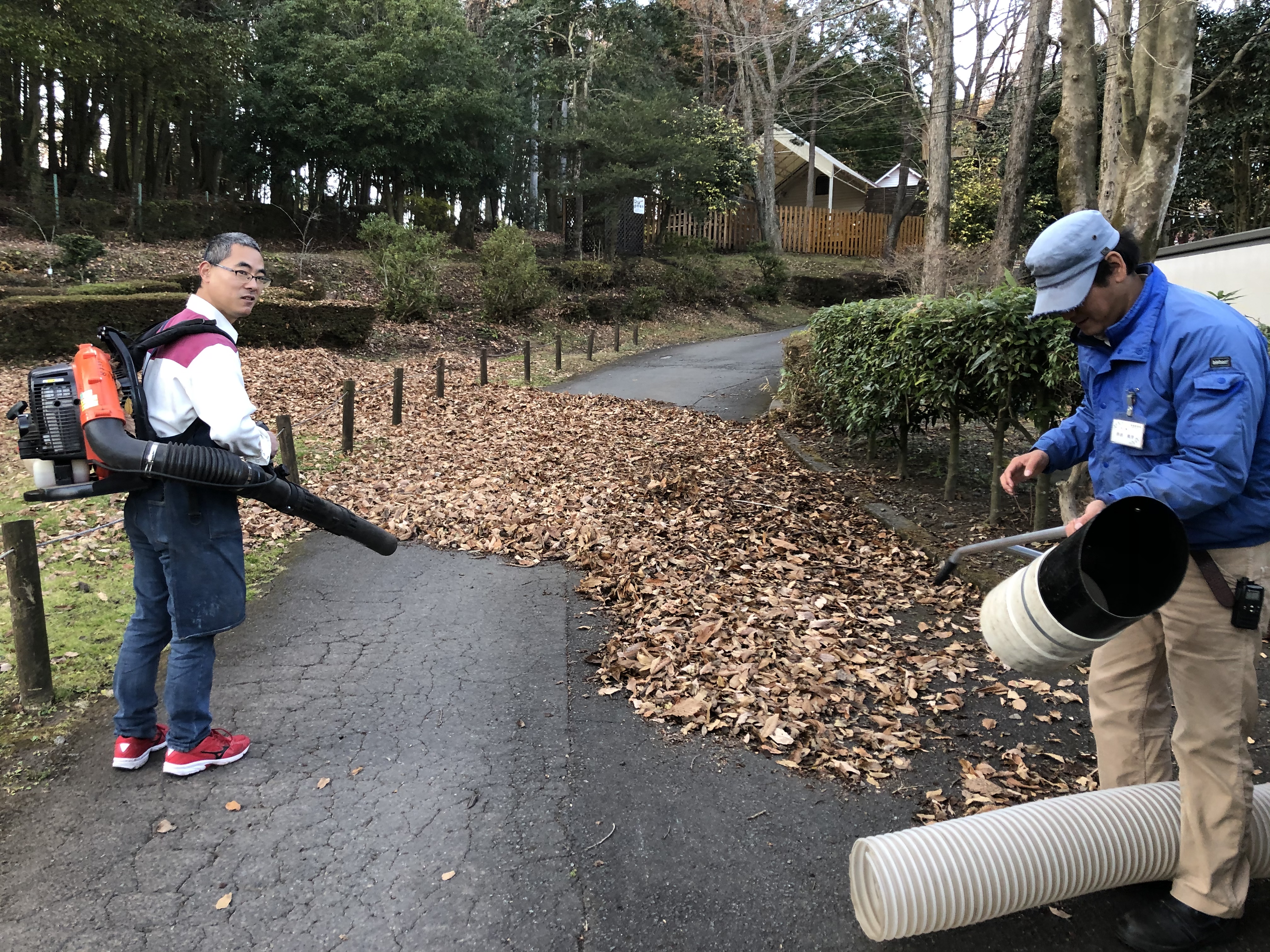 落ち葉を吸う機械、サイトウお姉さんも頑張りました。