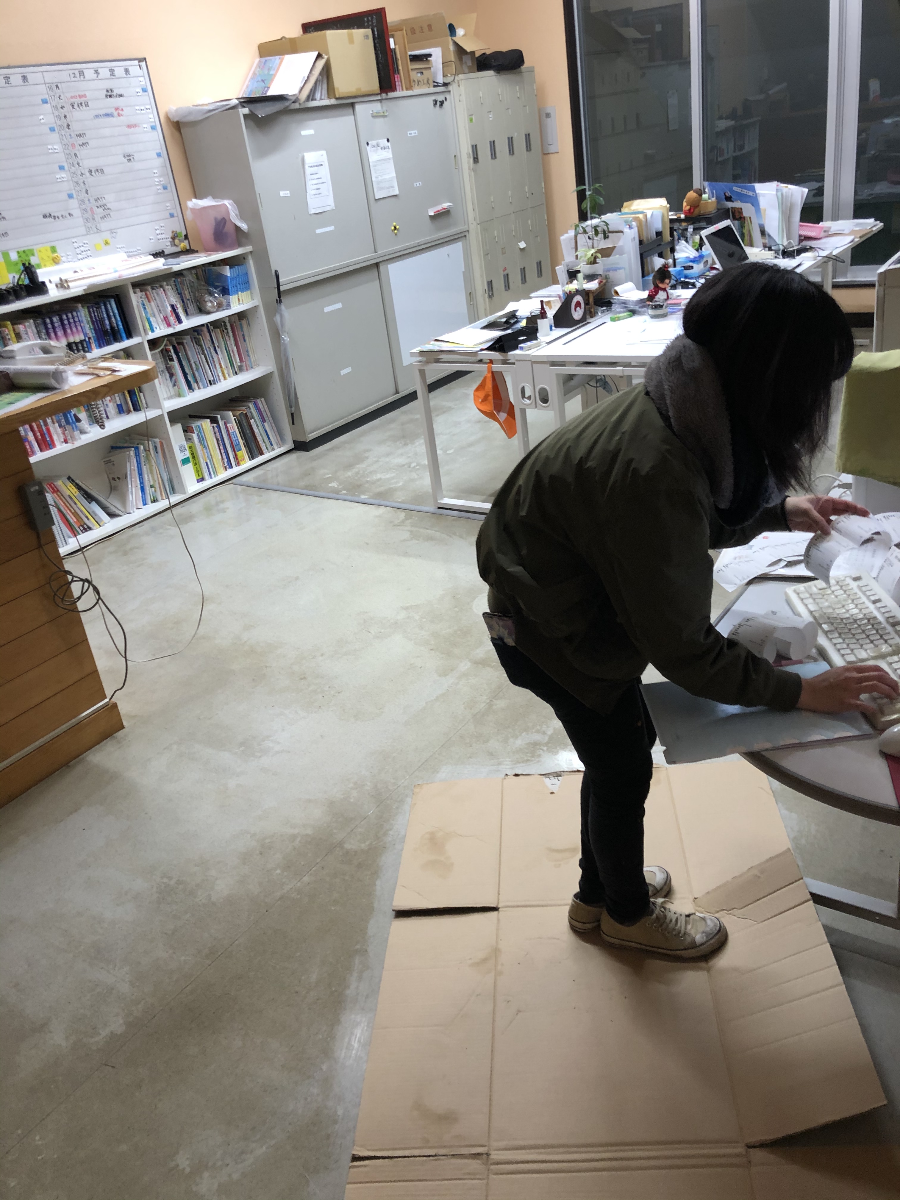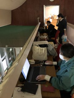 イノウエお兄さん、コバヤシお兄さんに電動トラムの運行を教える。