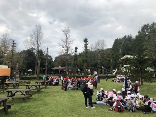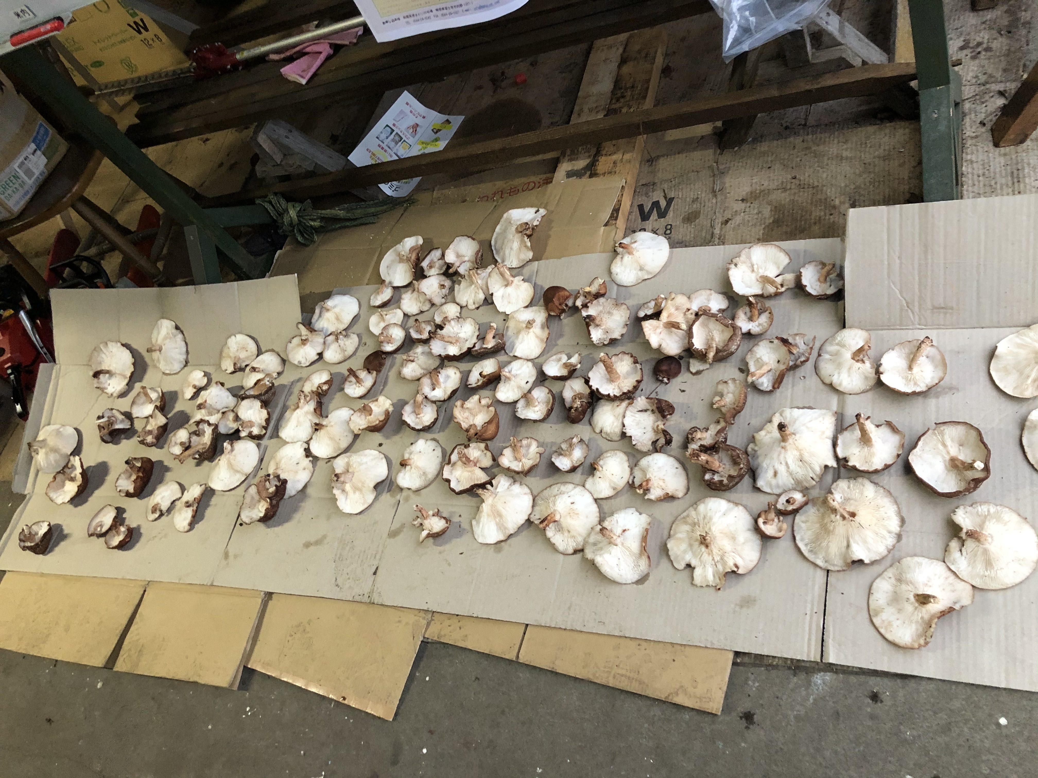 こちらでとって、串に刺して「1串100円のシイタケ焼き食べ体験」として、皆の喜びに変える。(ヨシダお兄さん頑張っています)