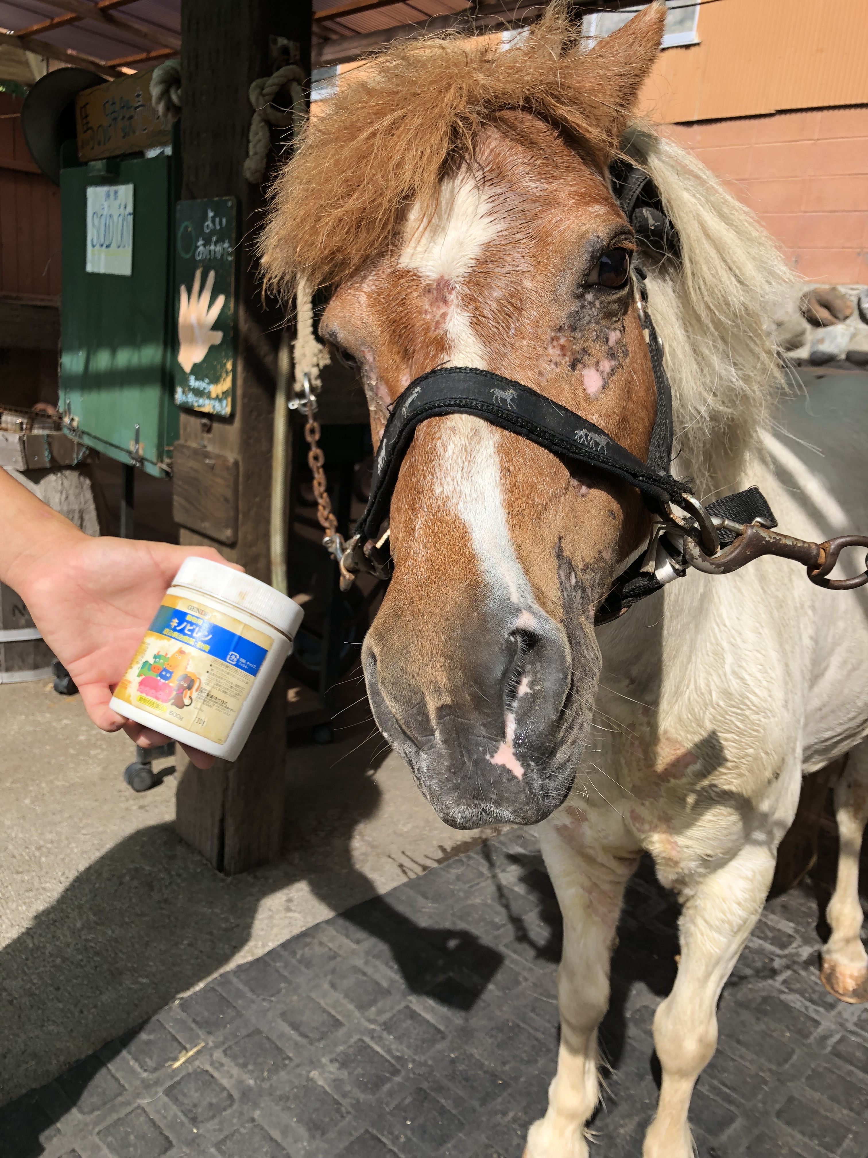 先週、虫刺されもあって皮膚がボロバリになった、ポニーのモモちゃん。
