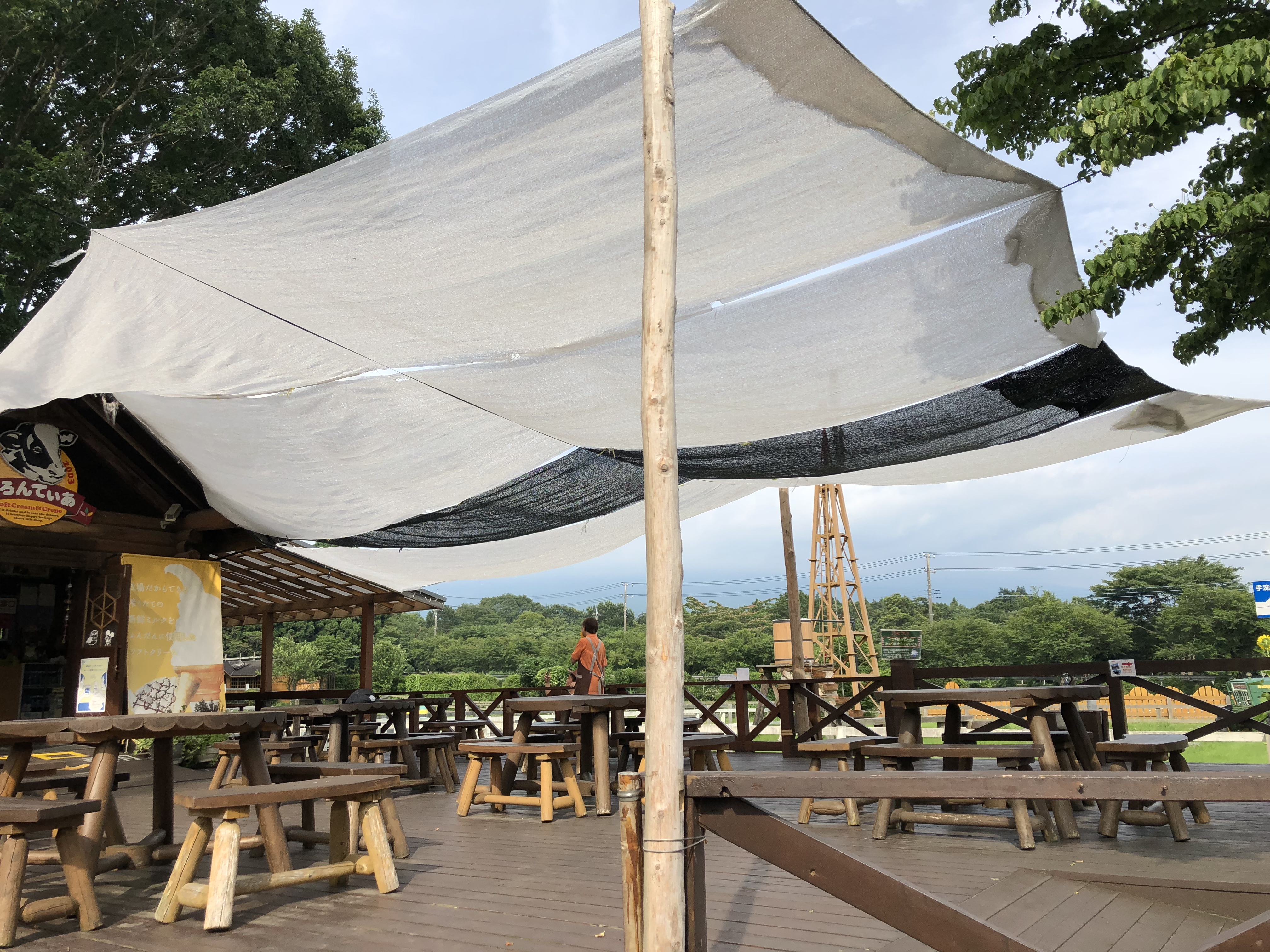 昨日1日で、日差しよけの寒冷紗をあちこちに張り終える。