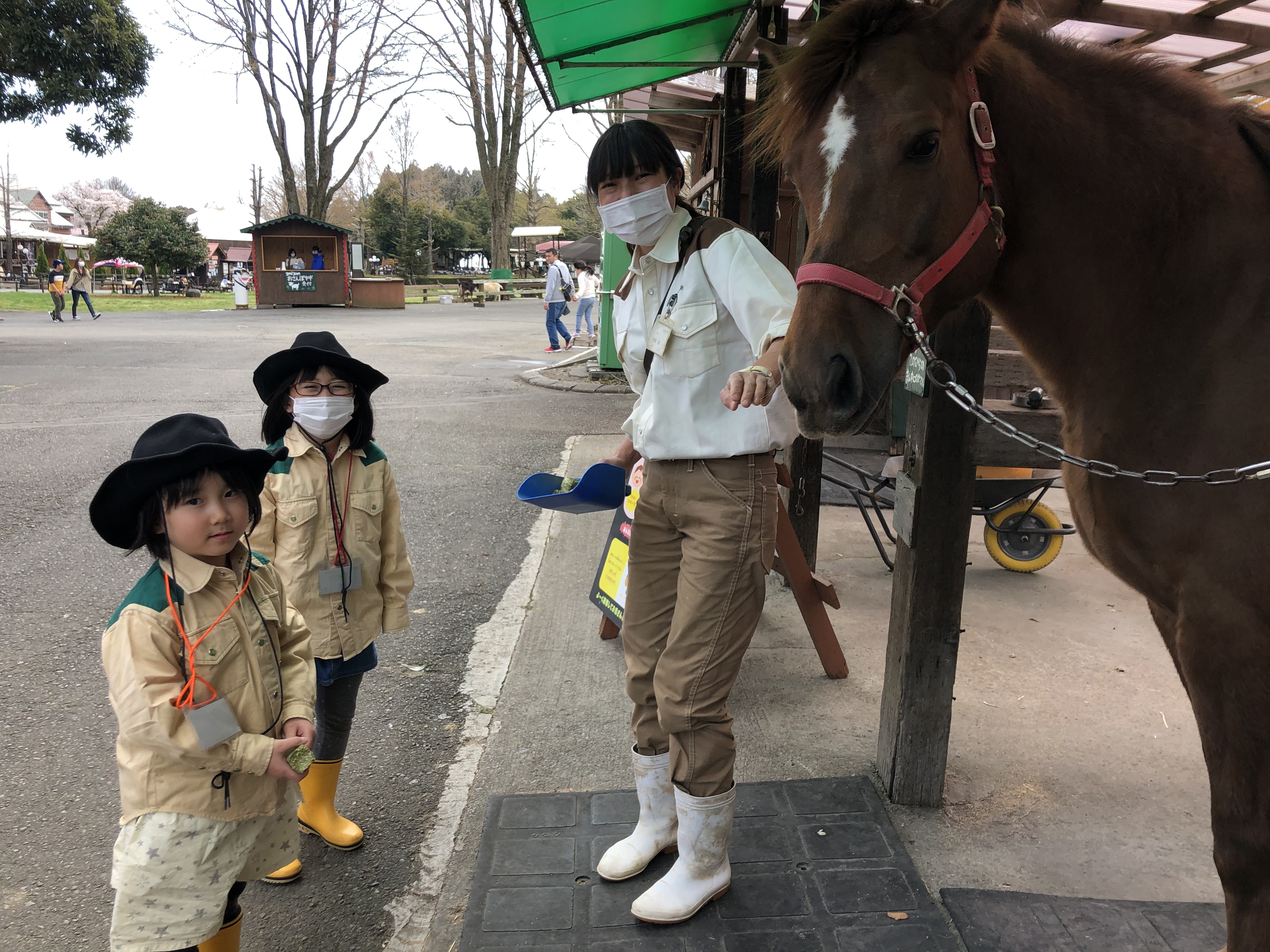 コハルちゃん達はサイトウお姉さんと一緒に馬のお世話を体験!