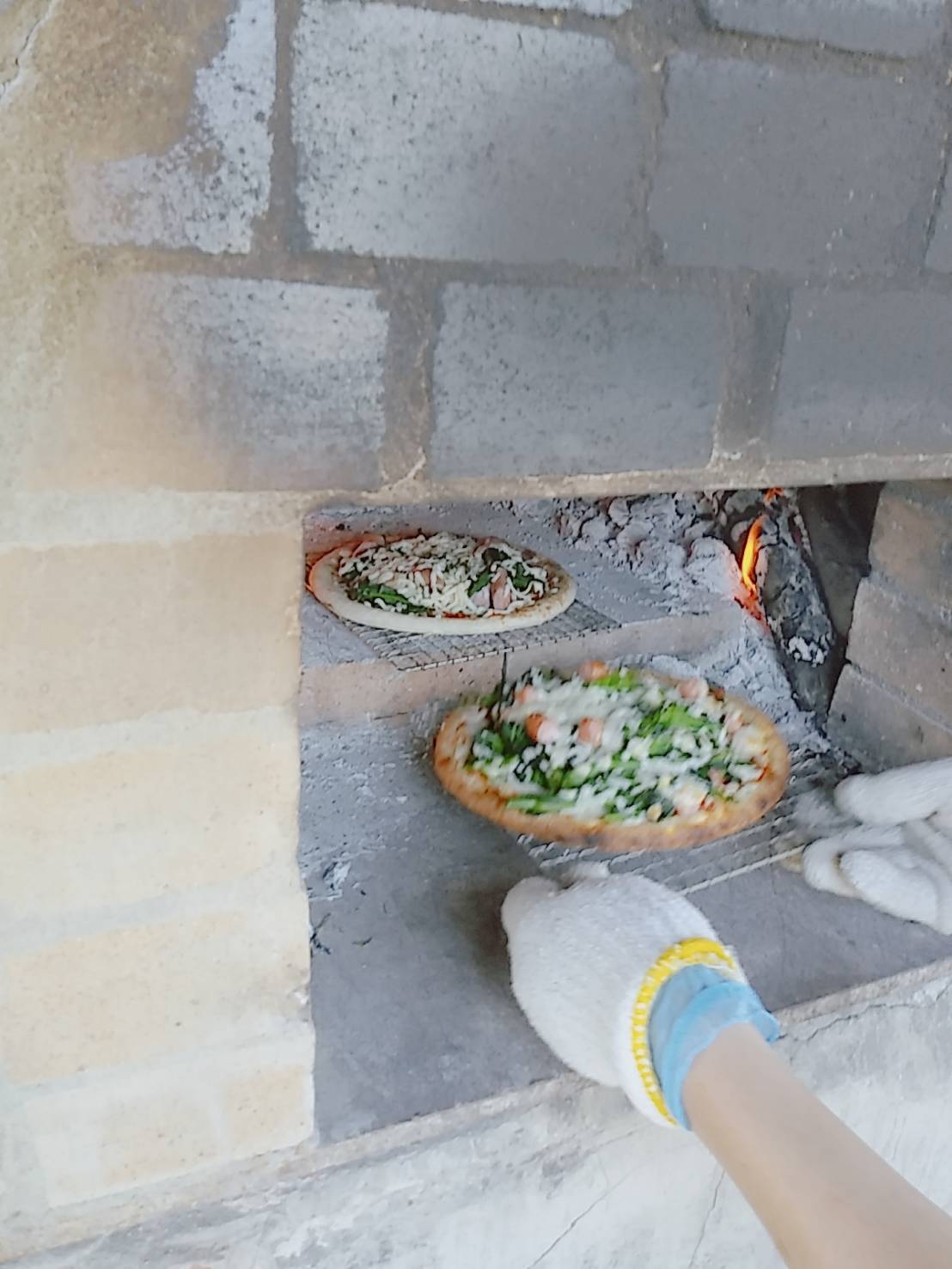 ヨシダお兄さんお手製のマキのピザ窯で・・・焼き上げる!!
