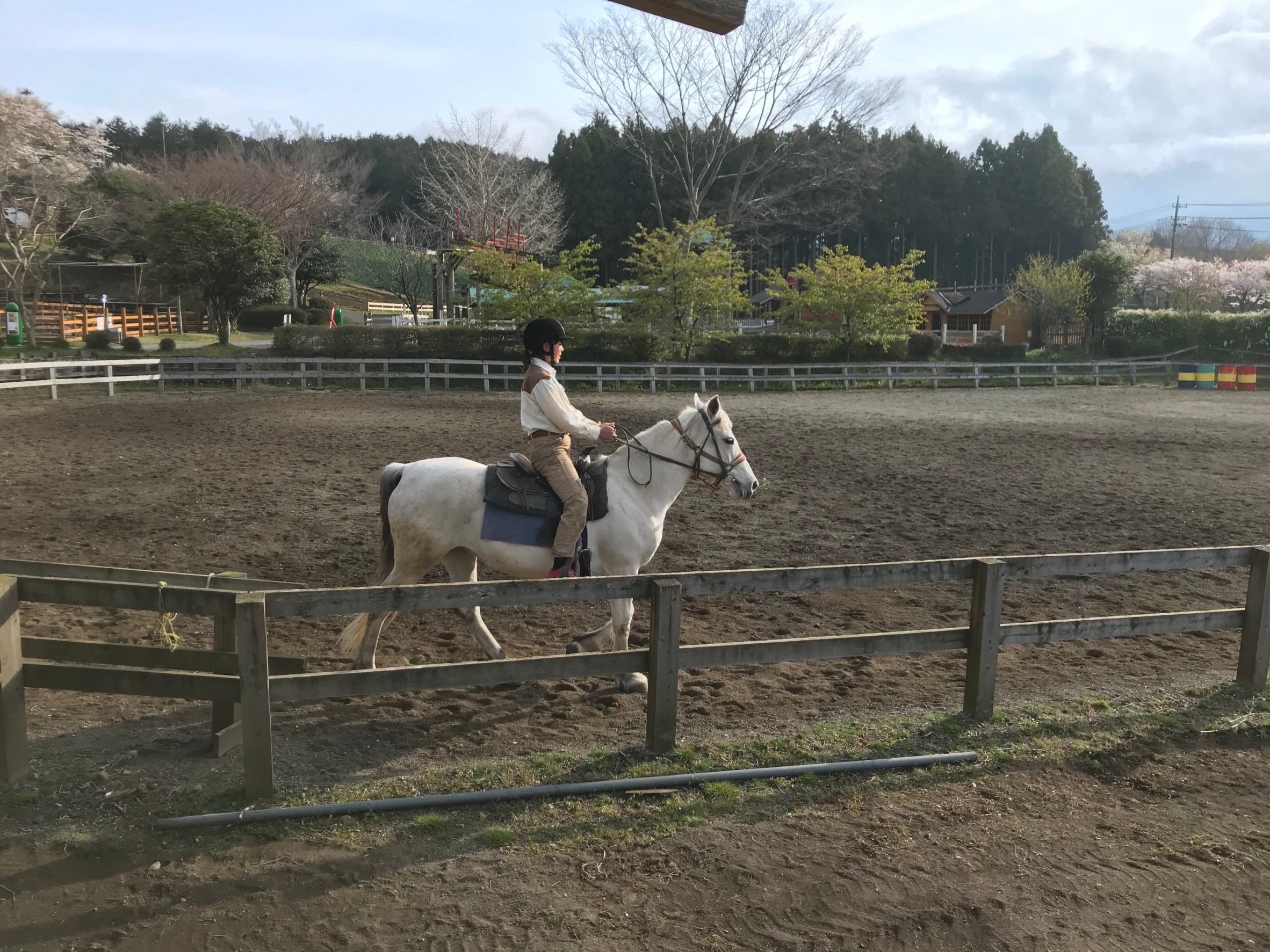サイトウお姉さん、自主的に朝早く来て馬の運動と乗馬の練習。