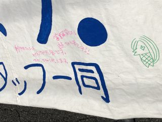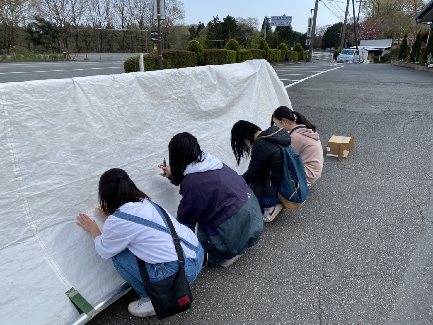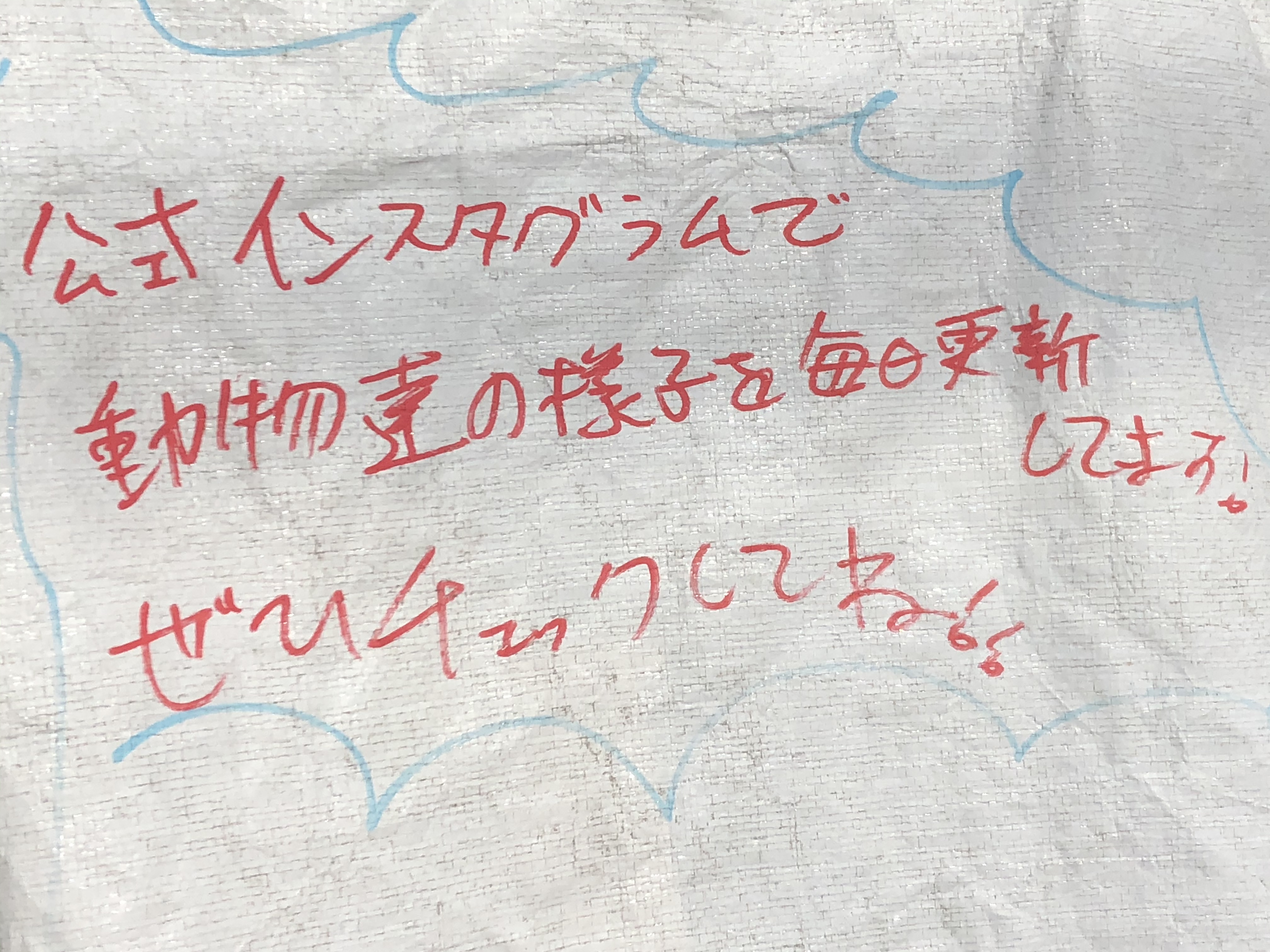 みんなで牧場へ遊びに来て、駐車場の応援横断幕に描いてくれていたとw