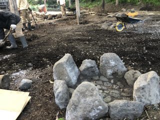 マキの炎でお湯が沸く仕組みにする打ち合わせをする。