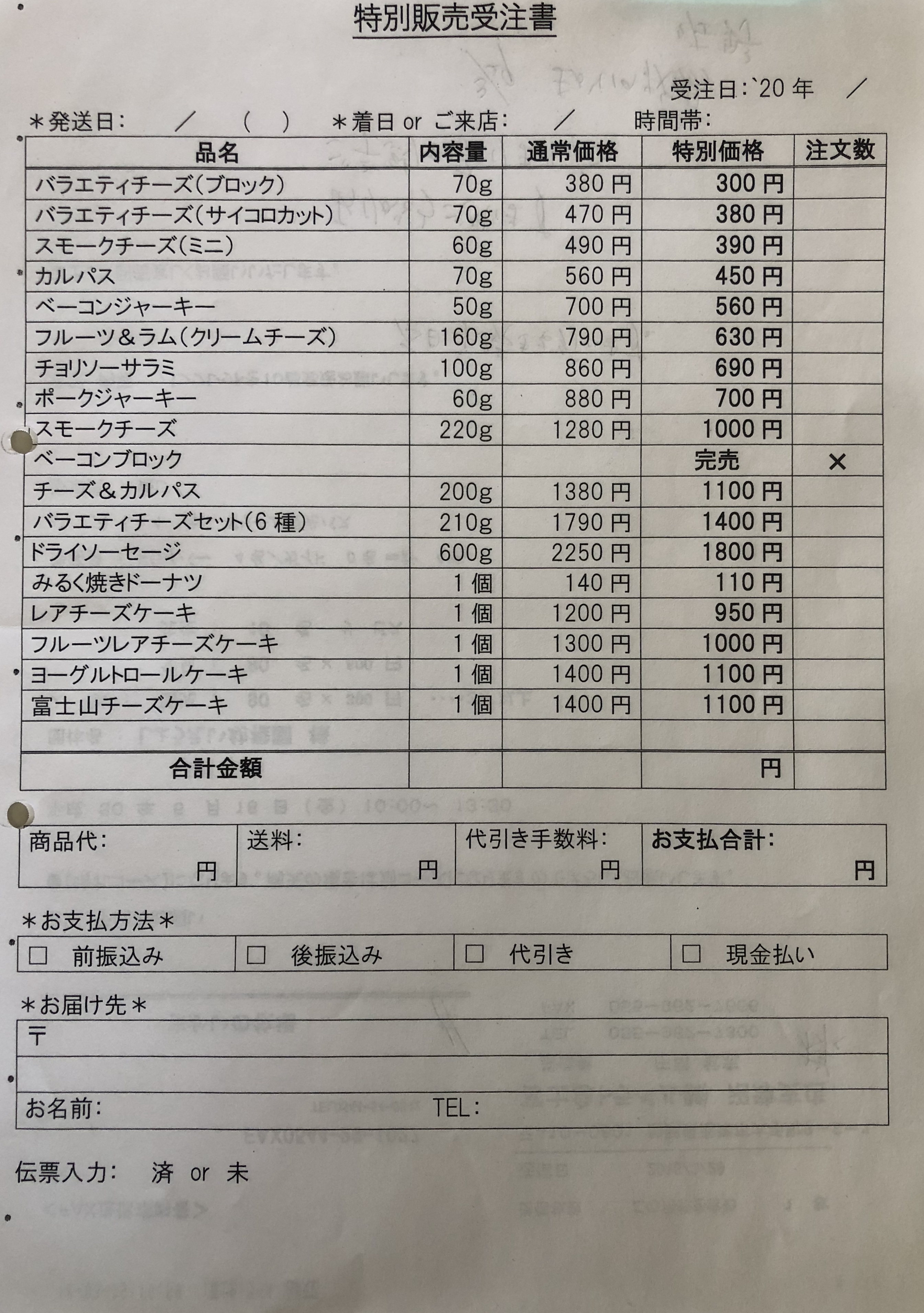 品名や送料を電話(またはFAX、又はメール)でお伝えいただければ、