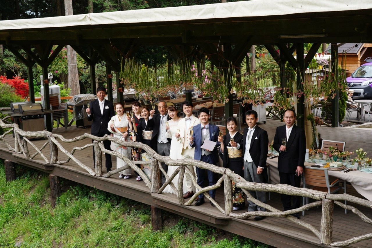 お食事などのメイン会場は森の隠れ家のテラスで行いました。