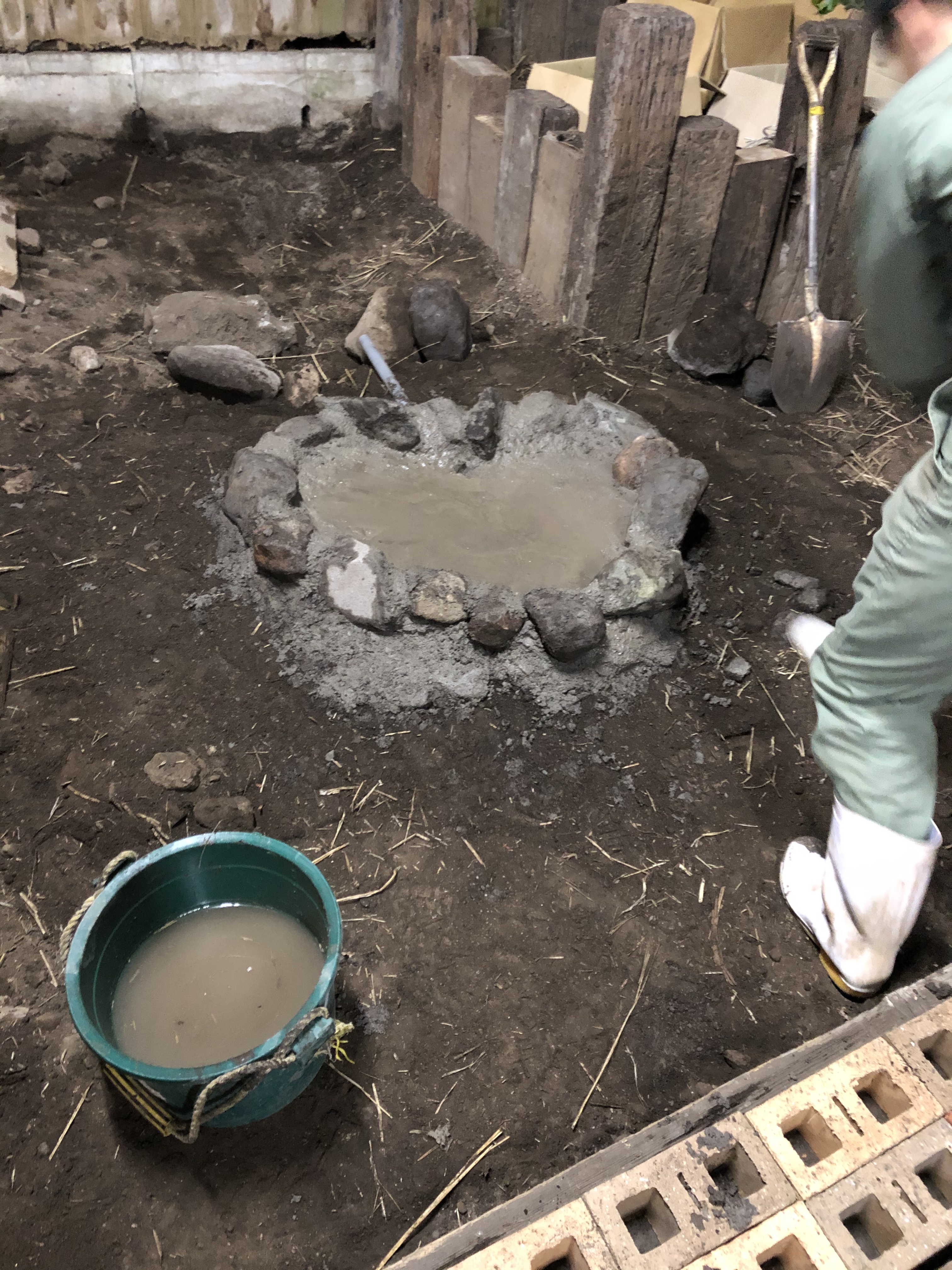 ガッシュガッシュとセメント練ってマツキお兄さんの手作り~。