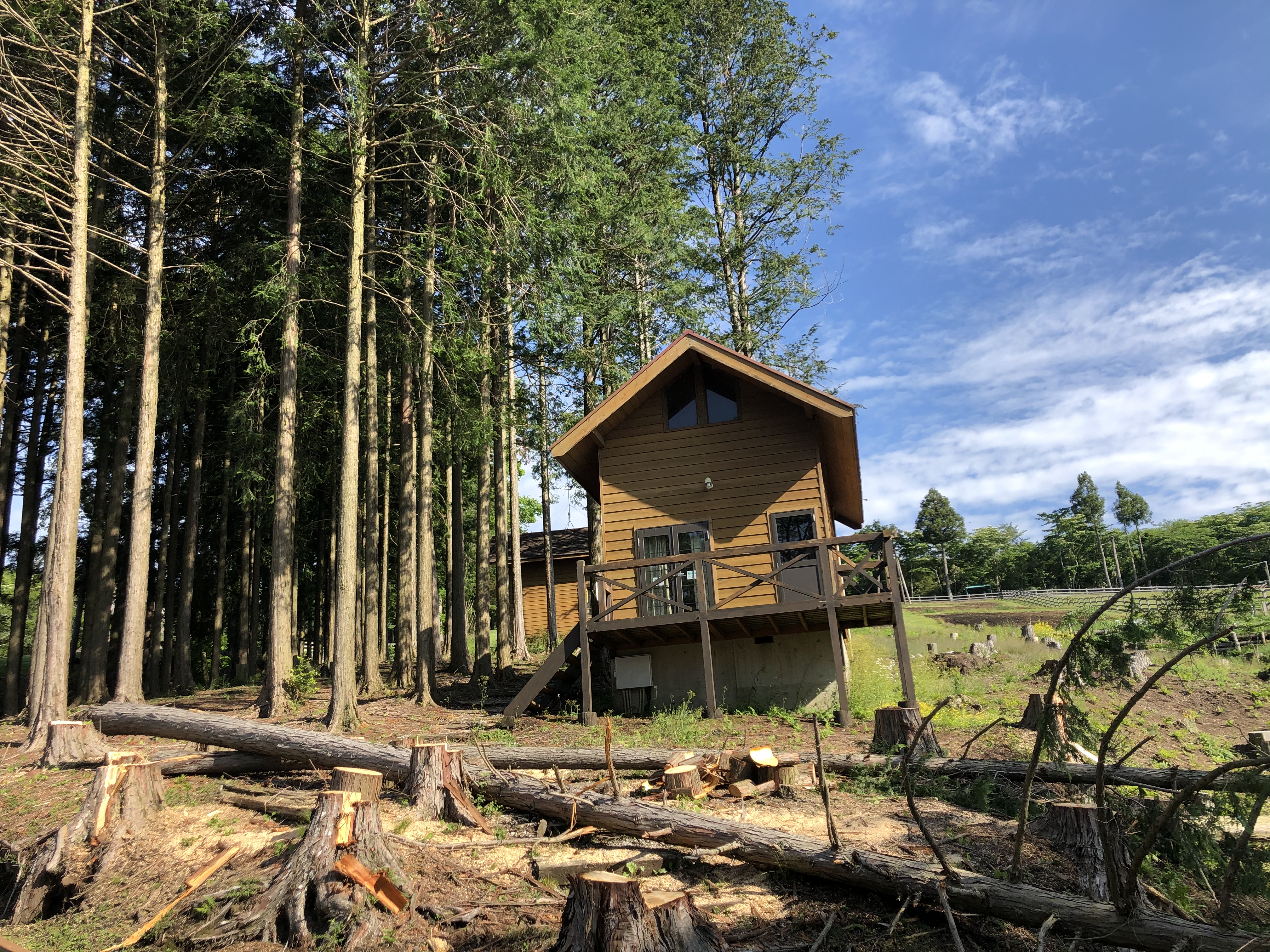 「一番右の、20メートルほどのヒノキを倒した瞬間動画↓」15秒くらい。