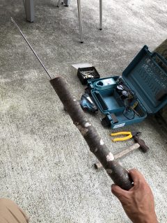 コバヤシお兄さんが「上でもコッコマッカラできるように焼き棒の準備やります!」と作り方を聞いてきた。