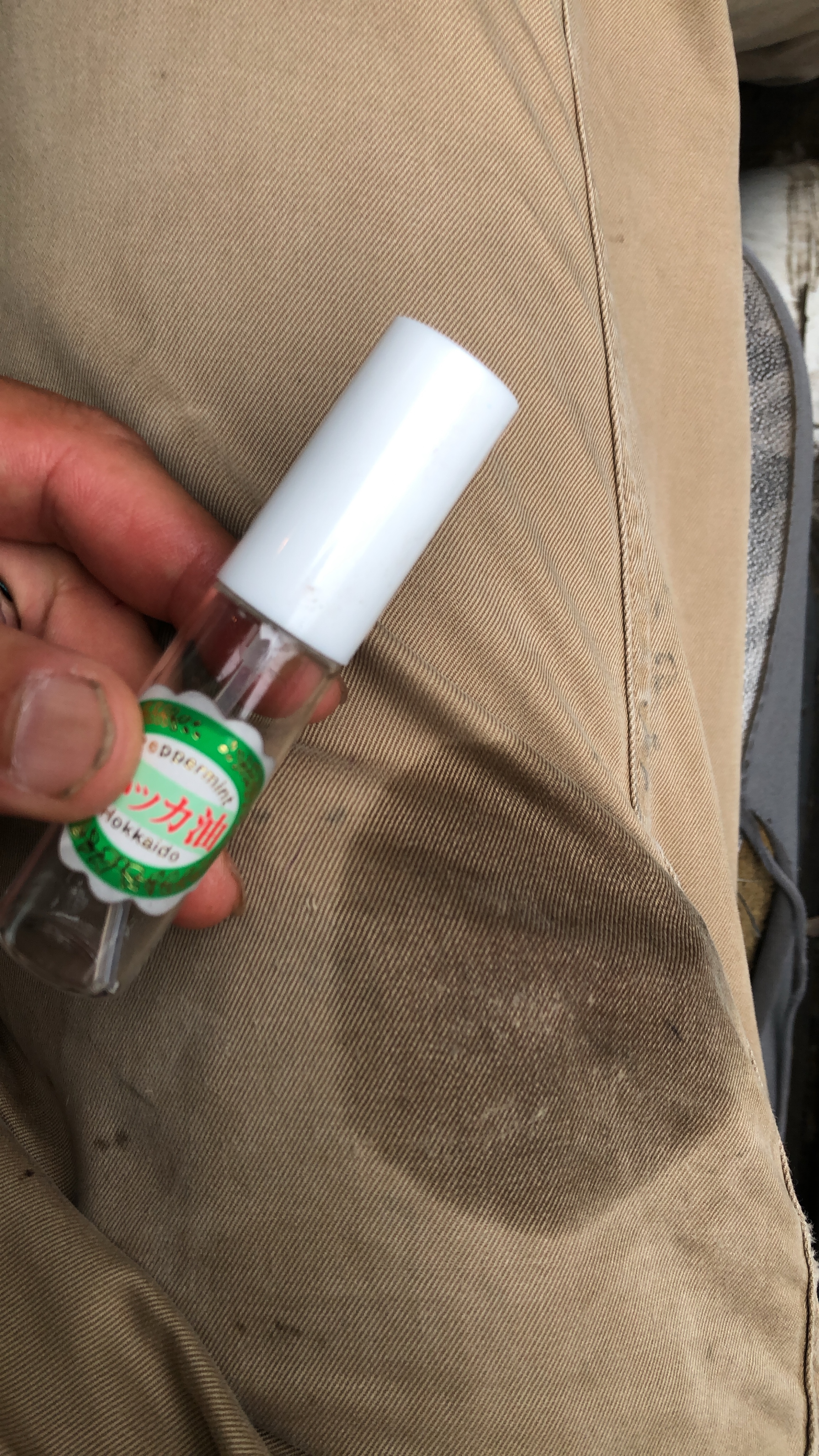 ハッカ油、ポケット入れてたら、破損していて全部中でぶちまけ・・・