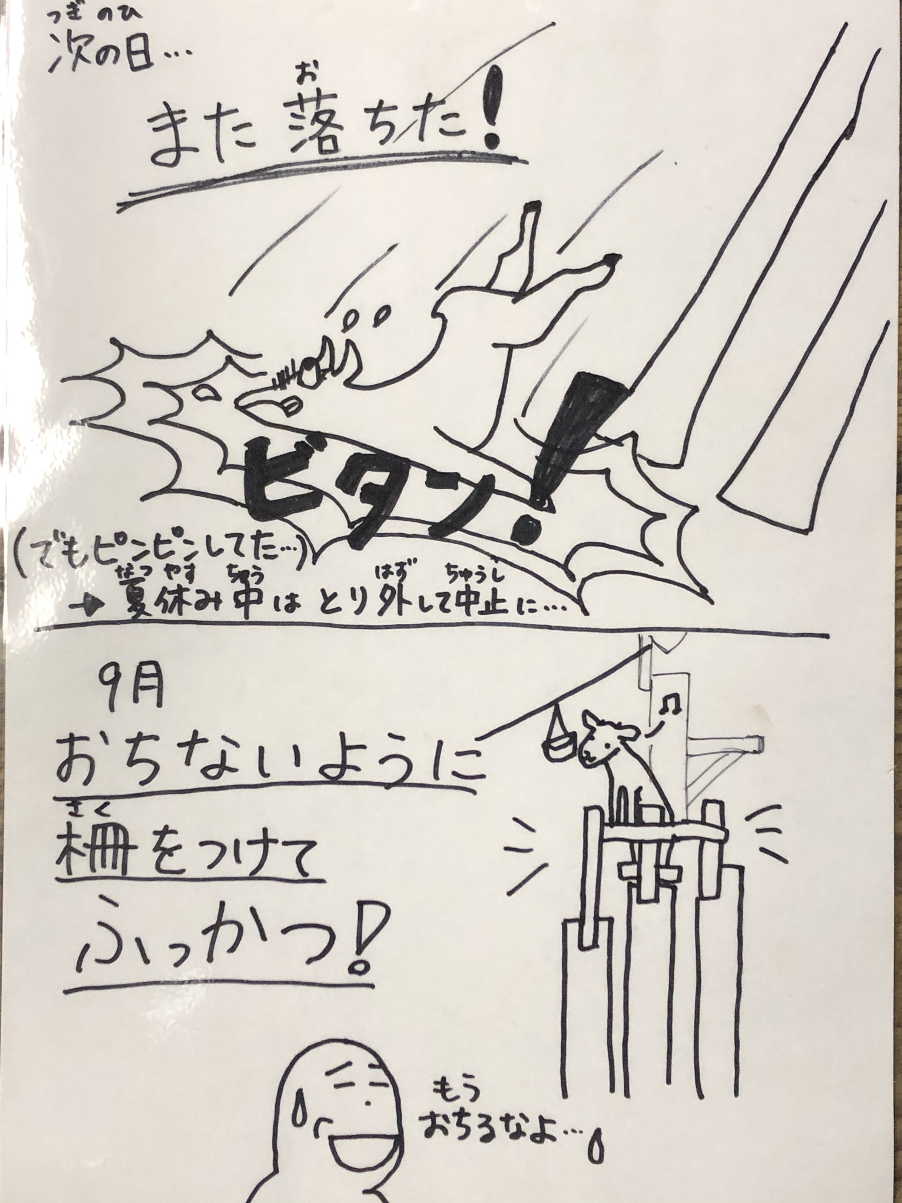 5月に作成し、7月に・・・シンジがてっぺんから地面に落下。