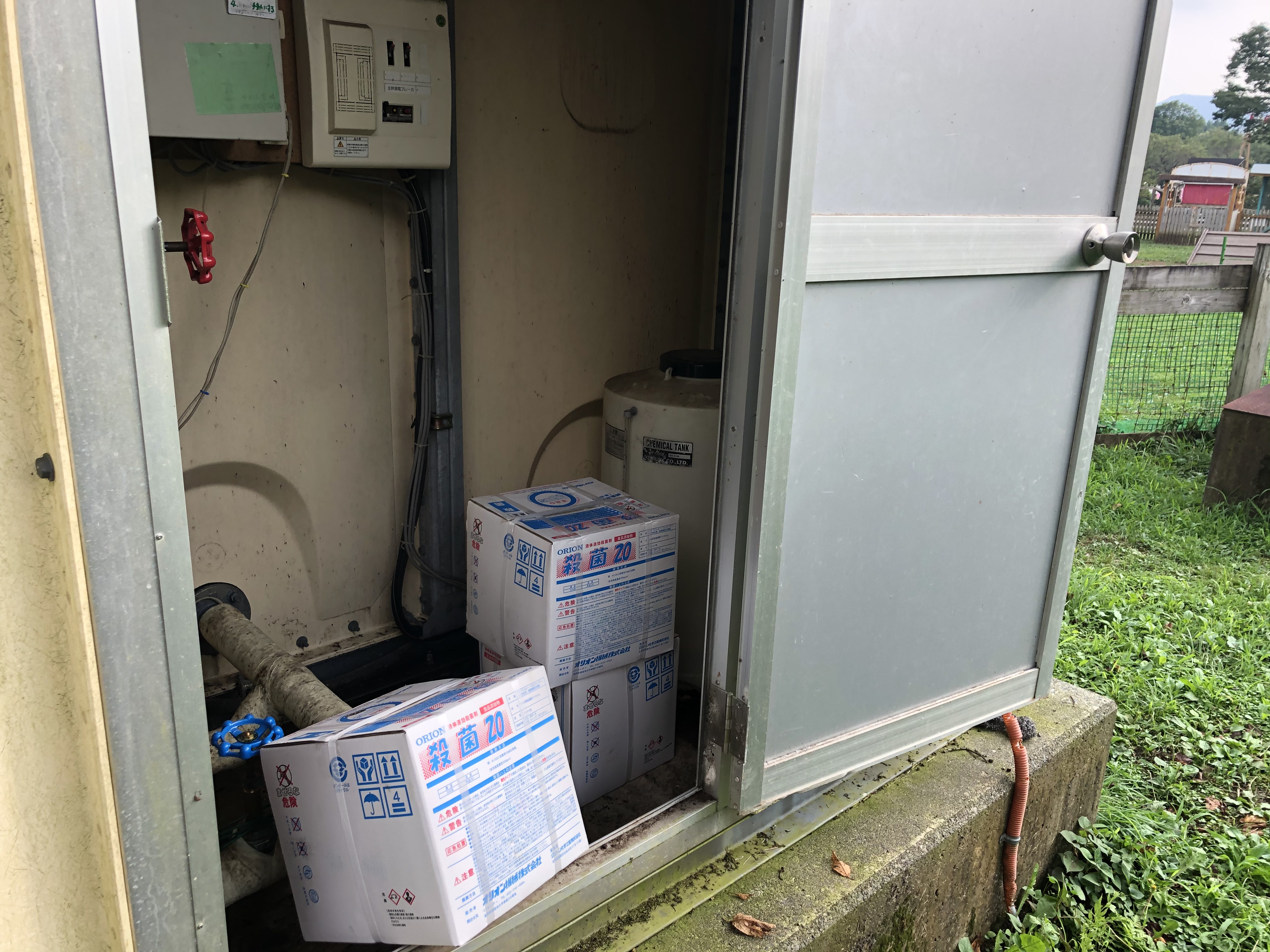 自然の水を、人が使えるようにするため殺菌してくれるシステムへの補給です。