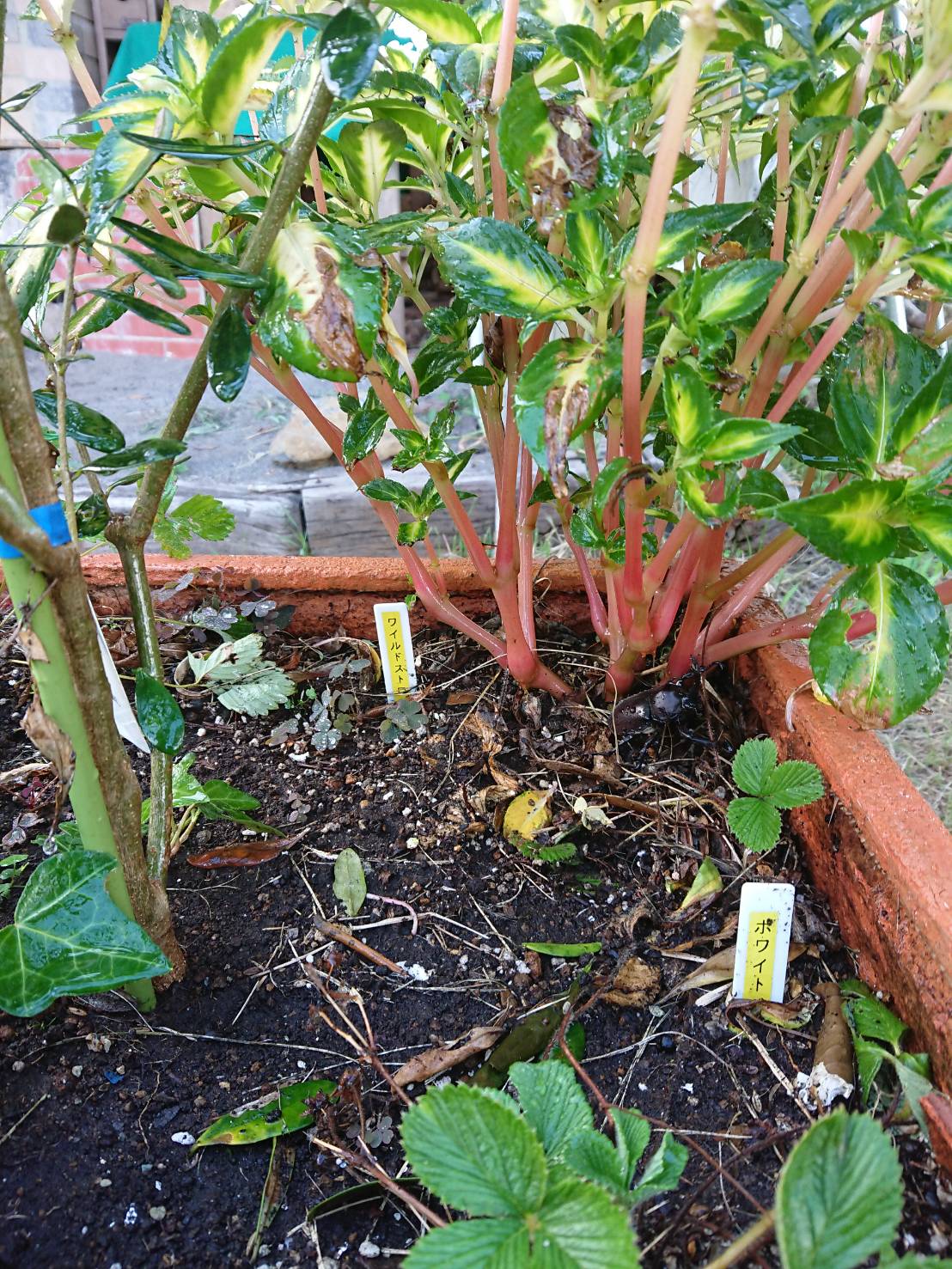 ヨシダお兄さんが、農園のたき火調理前に苺をひそかに植えています。