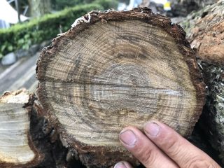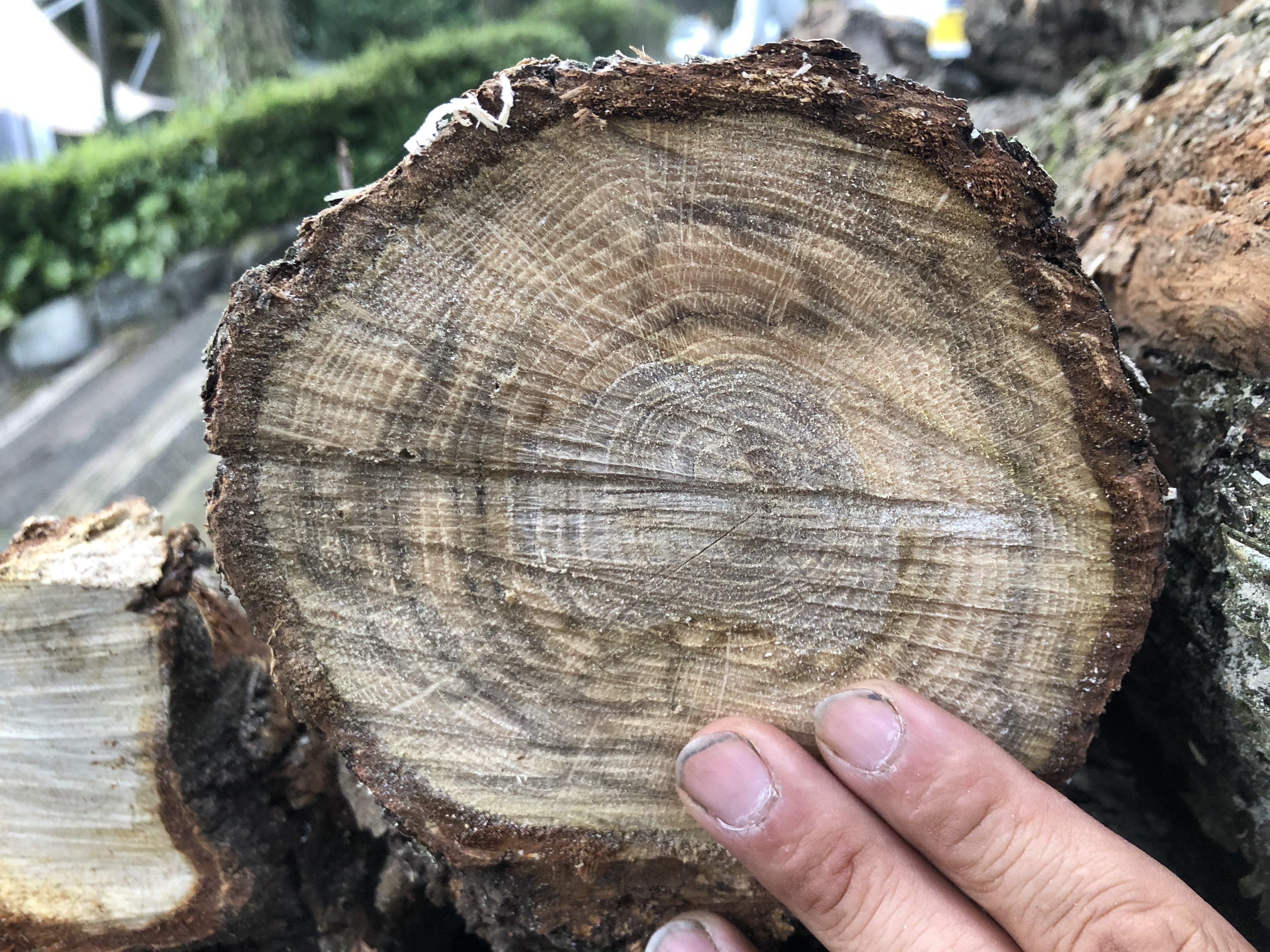 切り口を見てみると、ナラ枯れの部分らしいところが分かります。