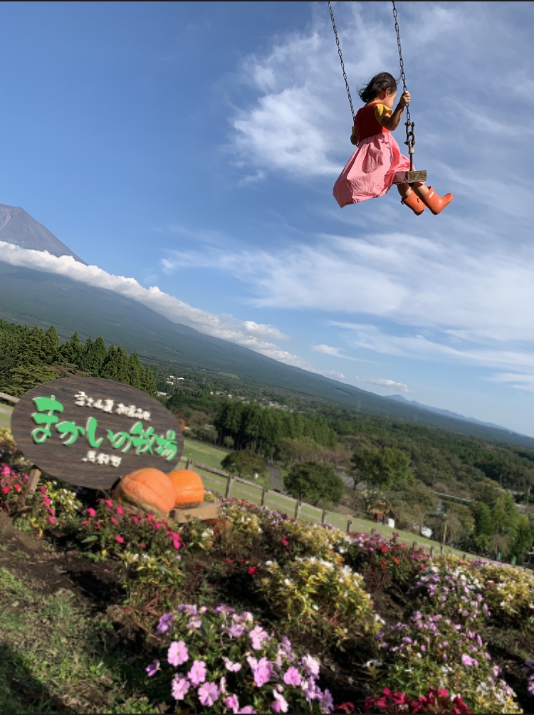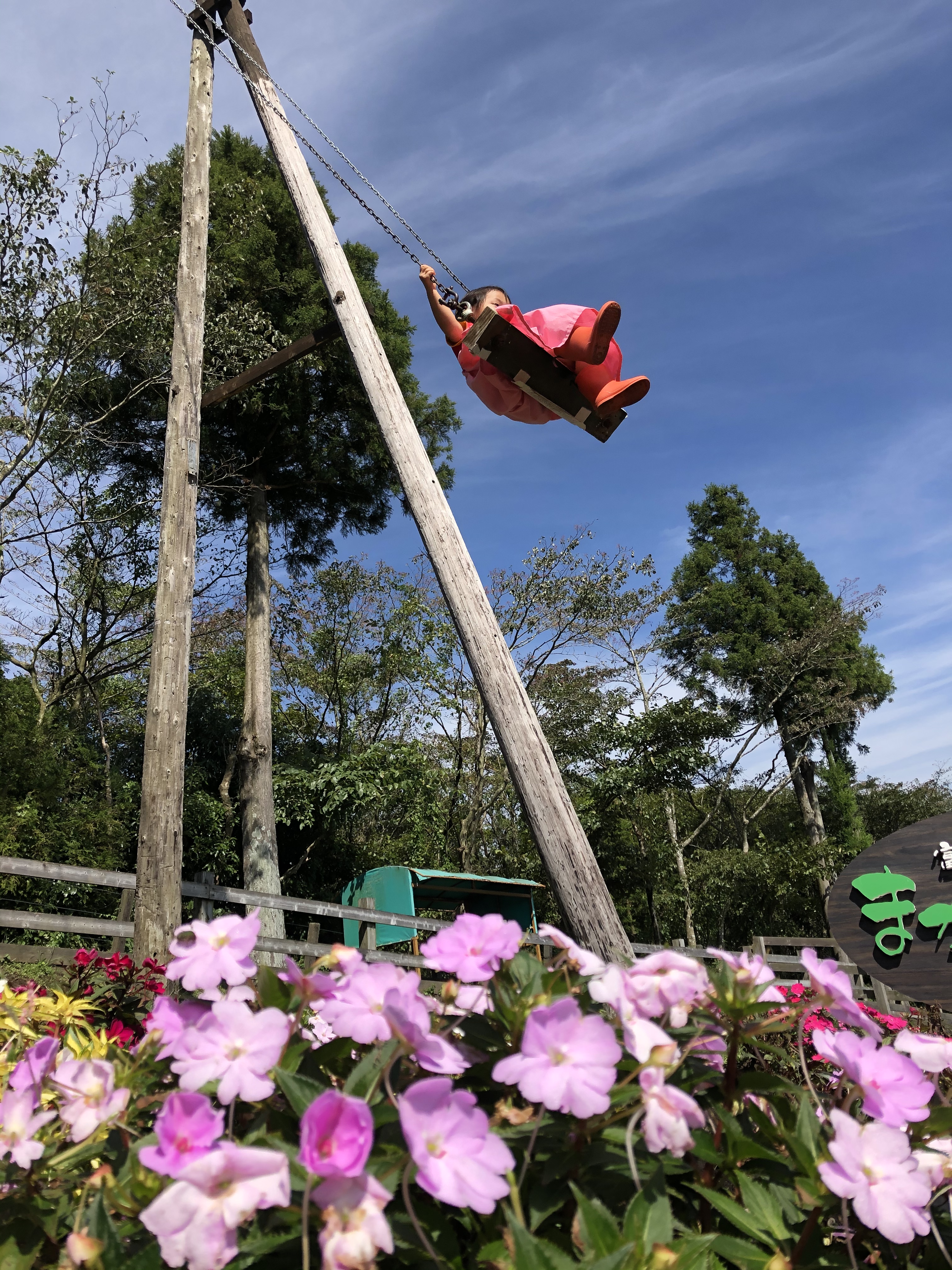 ブランコの下に花が咲いているのはあと1ヶ月!