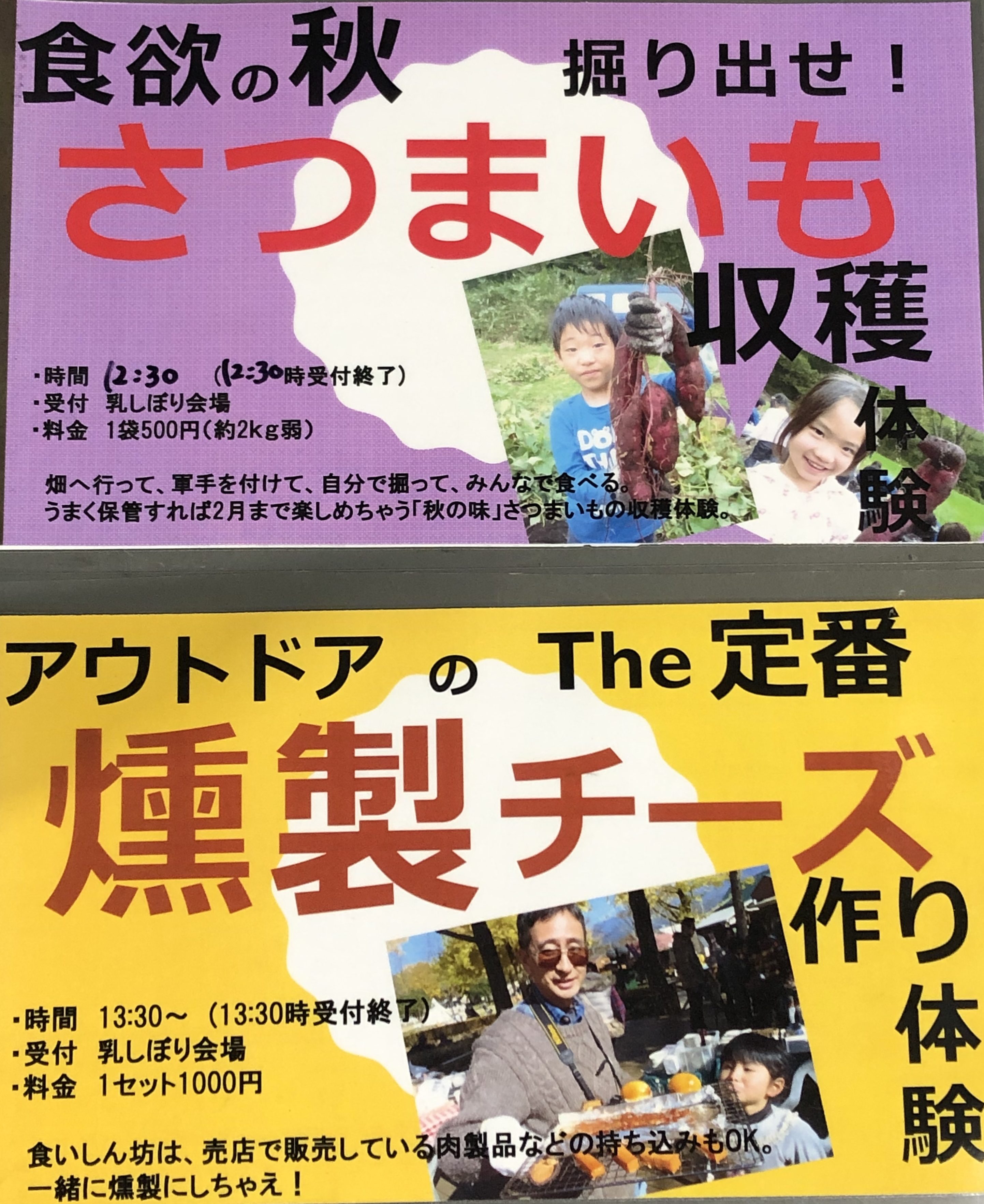こちらは10月中の週末は土日開催しております!11:30乳しぼり前で開始!(受付は、入場開始とともに開始。名前を用紙に書き込む方式で先着順で定員になったらキャンセル待ち扱い)