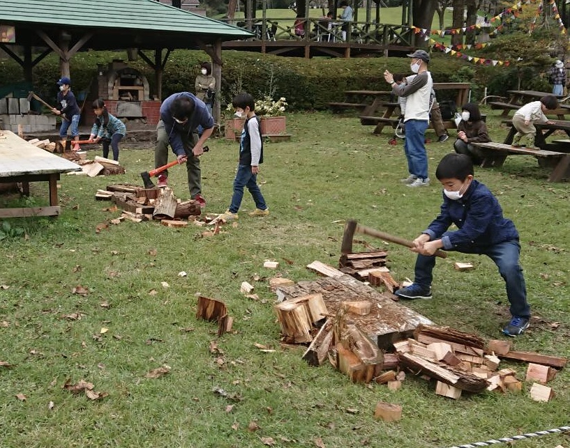 正しい扱いを学んでから、大オノで薪をパッカーン。