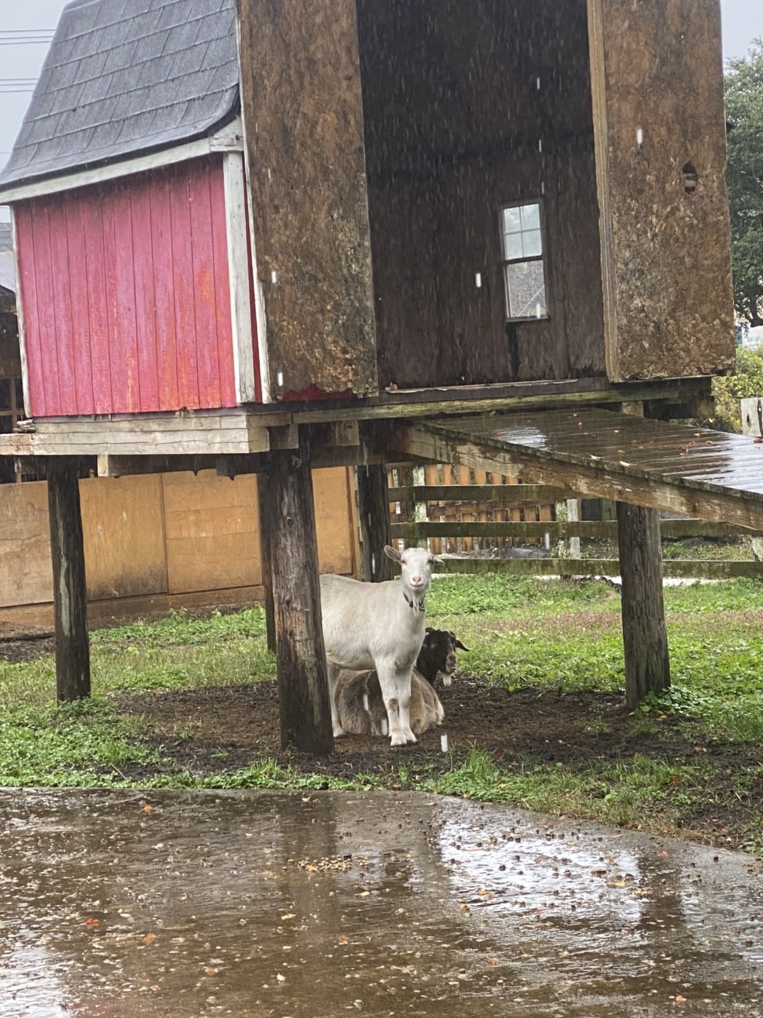 ヤギは体が濡れたり汚れるのが大っ嫌い。