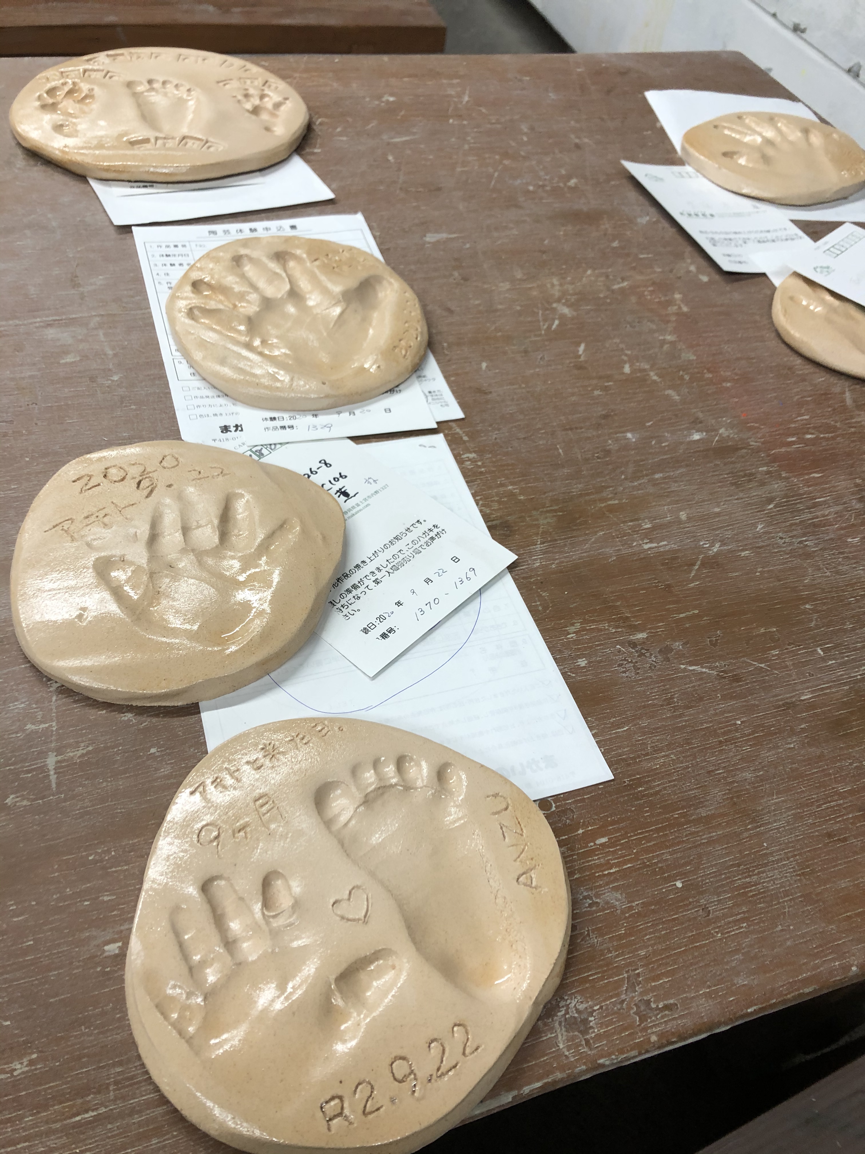 お皿やカップに湯飲み、茶碗や手形足形などが作れます!