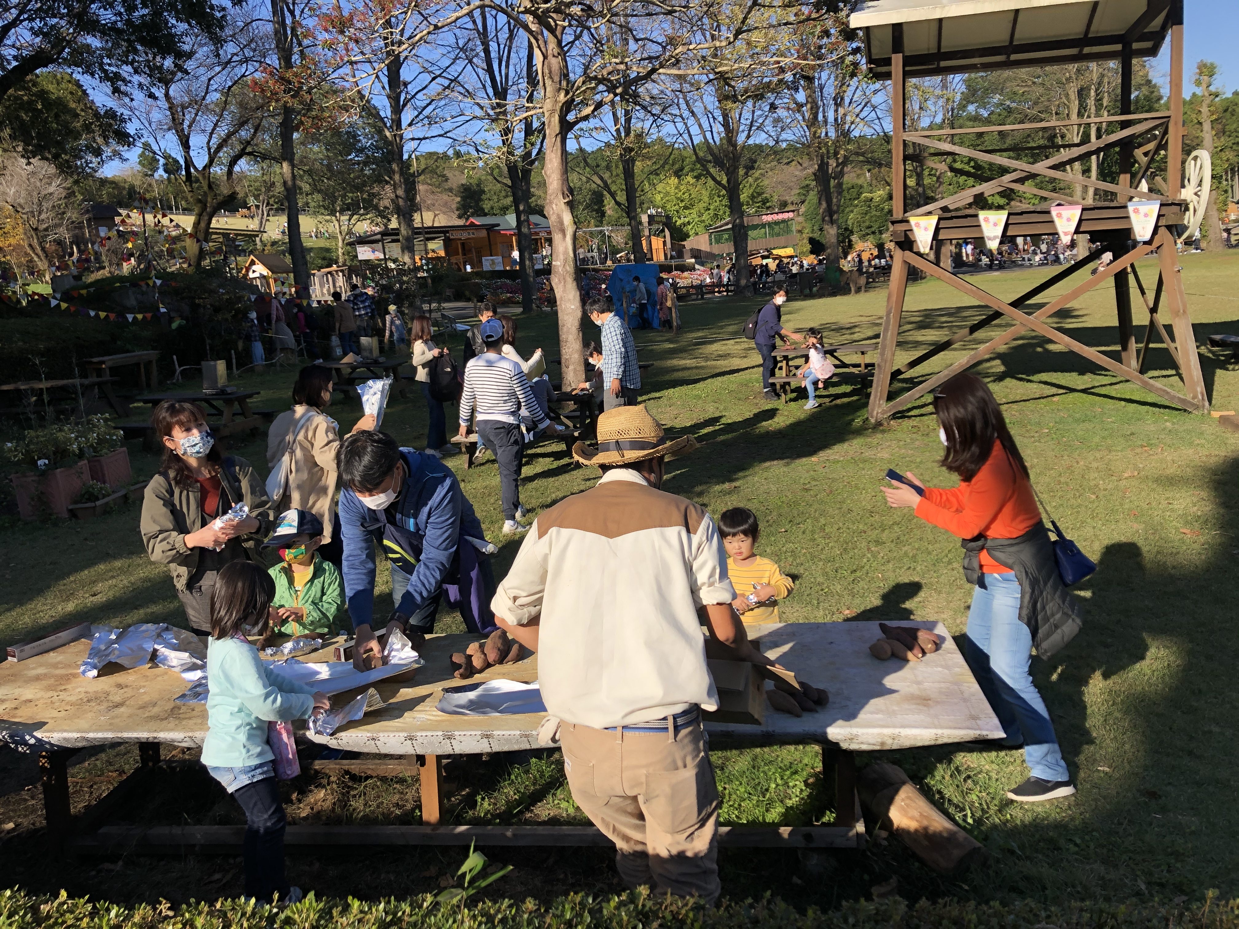 「たき火で焼き芋作ったことある人ー!?」と聞くと、大半の方はやったことがない様子。