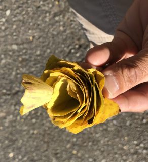 最後に筒状に細くした葉を中央にススッと差し込むのを2~3回するだけ。