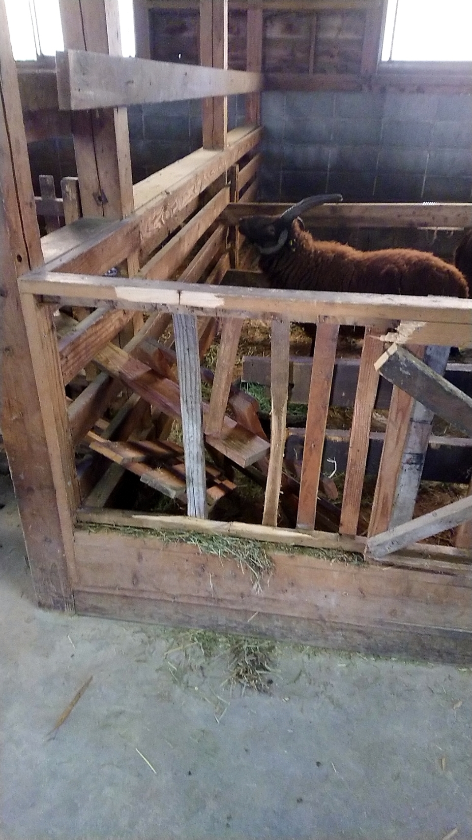 ③乗馬コーナーのスタッフ休憩場所にしているプレハブは、マンクスの頭突きによって壁はベコボコにされて、窓はひしゃげ、破壊されかけた。