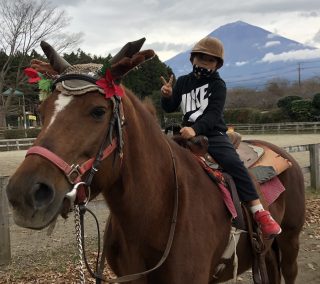 始めて一人で乗馬(引馬)に挑戦したアミちゃん、