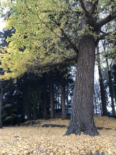 境内のイチョウが見事な黄色いじゅうたんを作っていました。