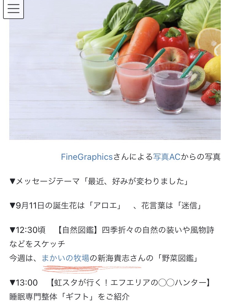 スマホでも、「ラジオF 野菜図鑑」で検索すると