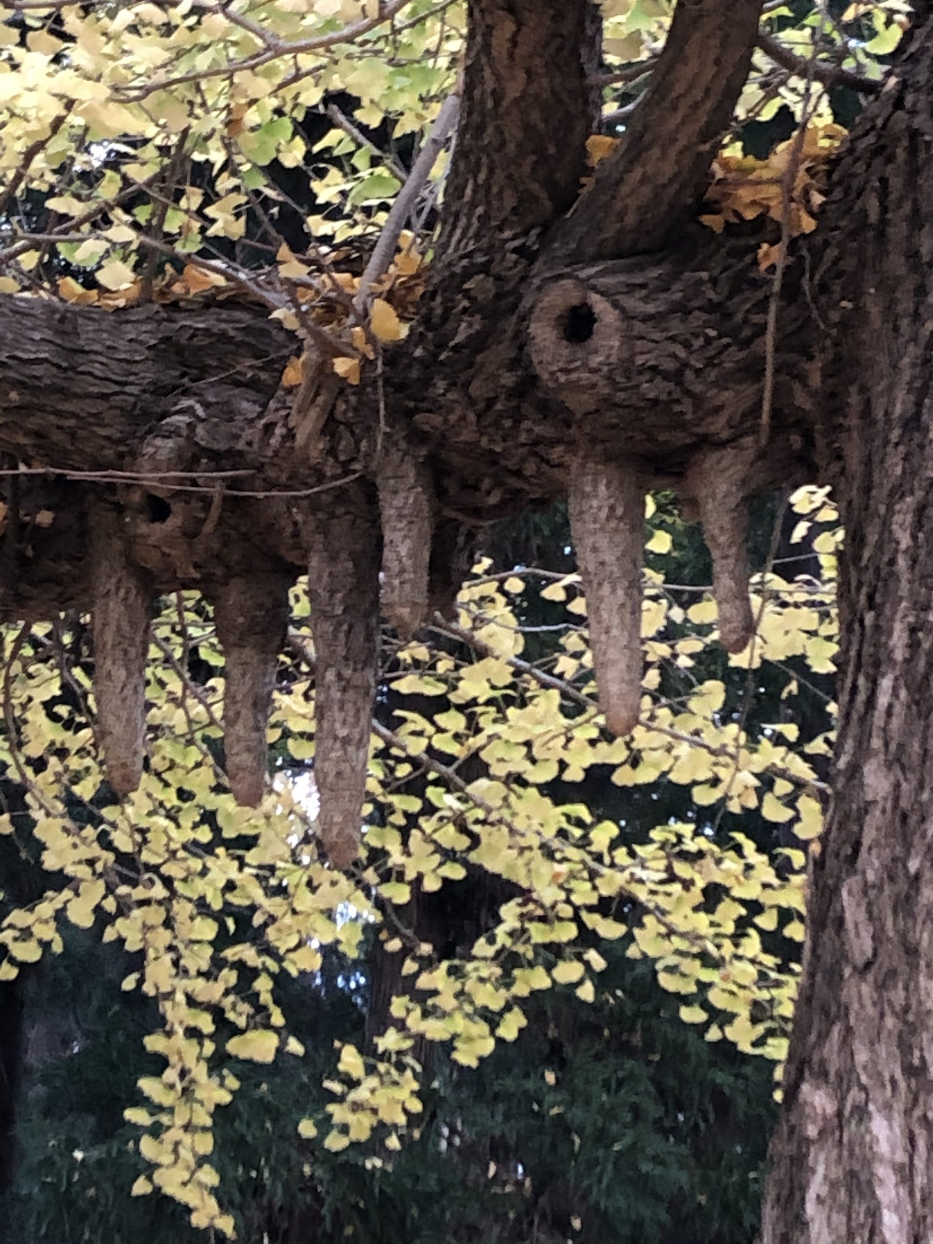 老齢な銀杏に時折みられるこの垂れ下がりは