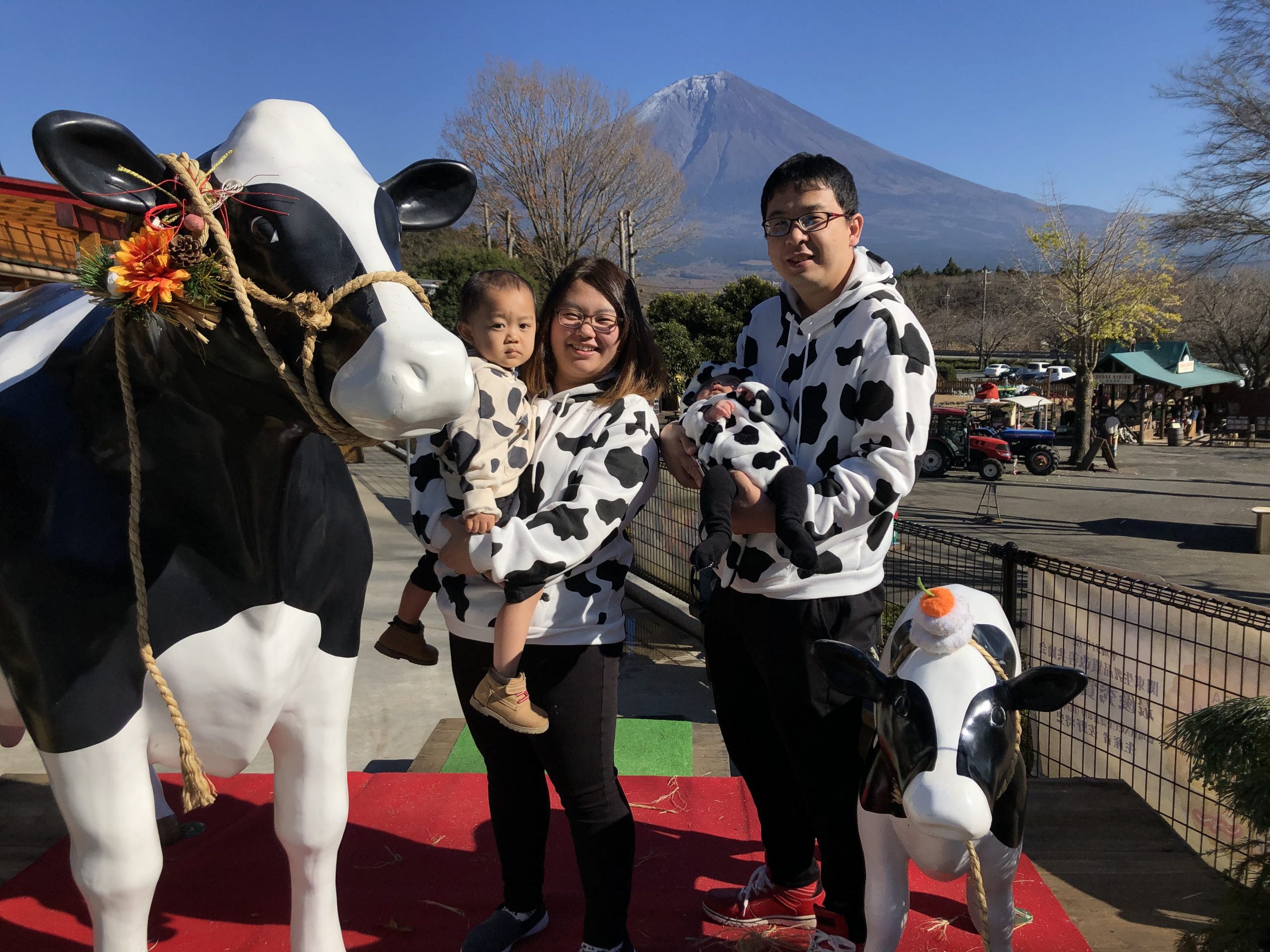 日当たりの具合、富士山とウシ(FRP)の配置等も考えつつ。
