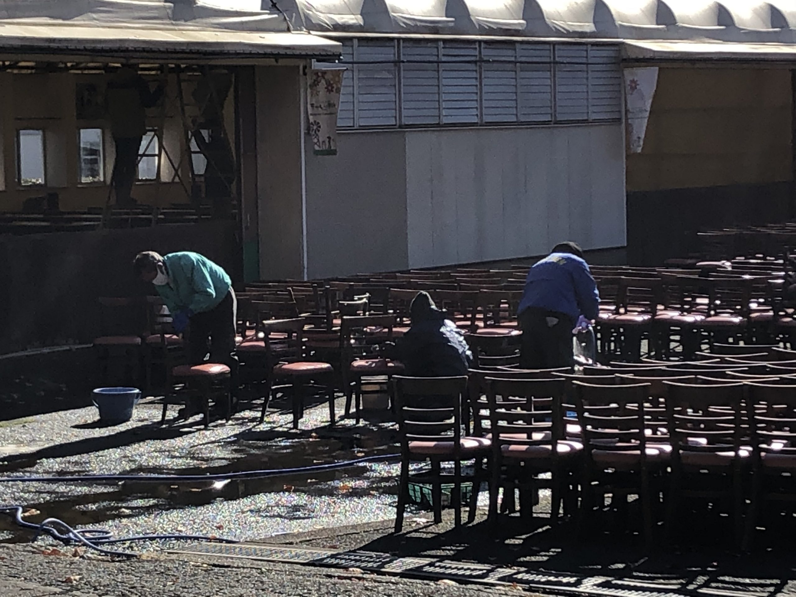 毎年12月の大掃除で、イステーブル・照明・天井・床などを磨き上げます。