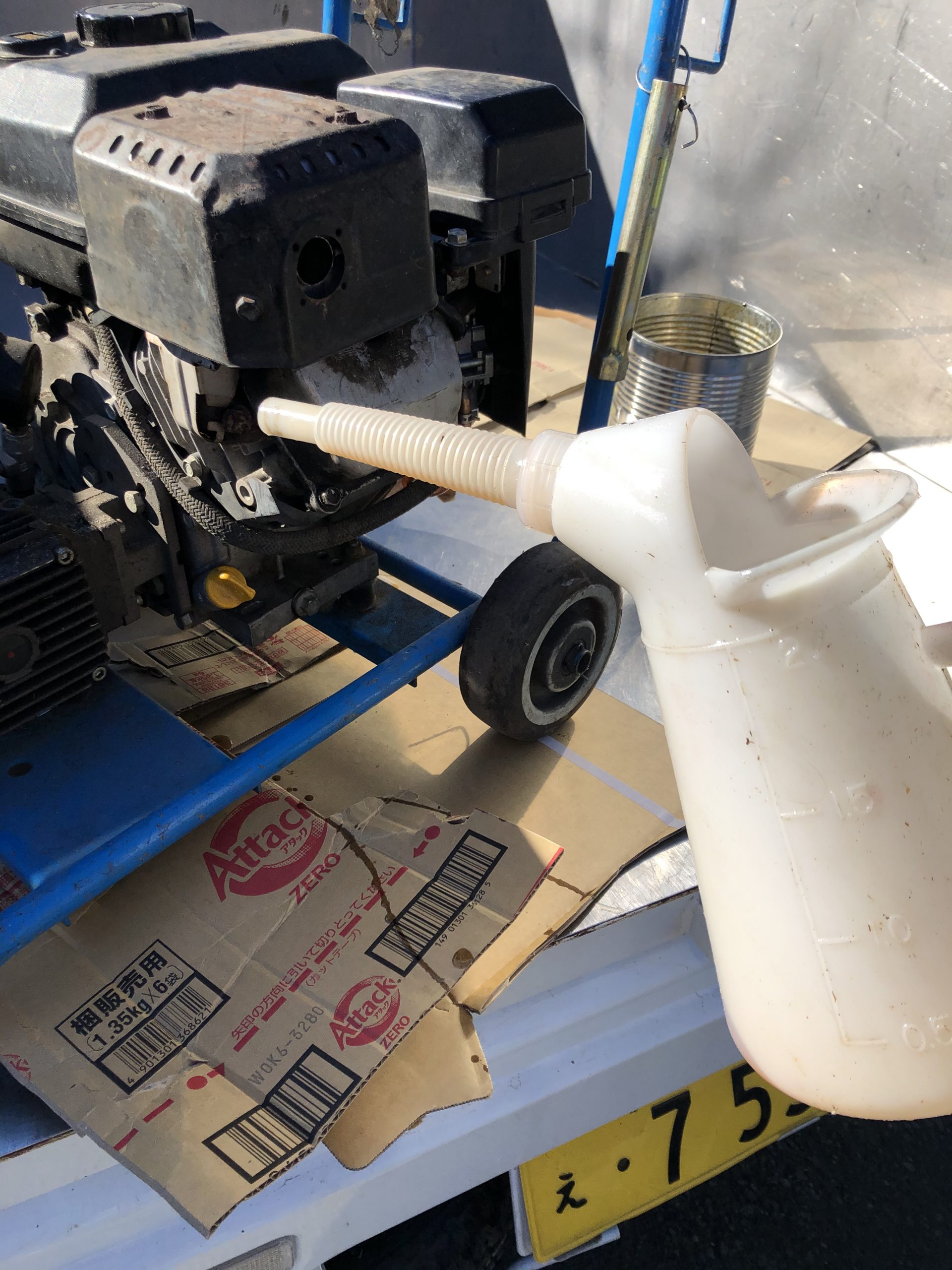 エンジンオイルが汚れていたので、全部交換する。