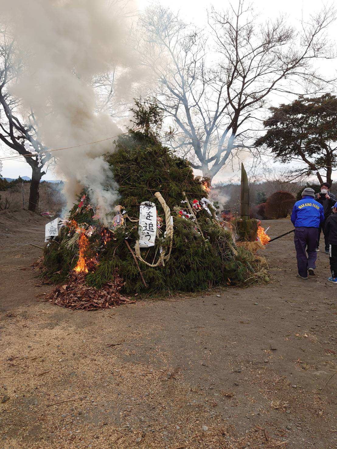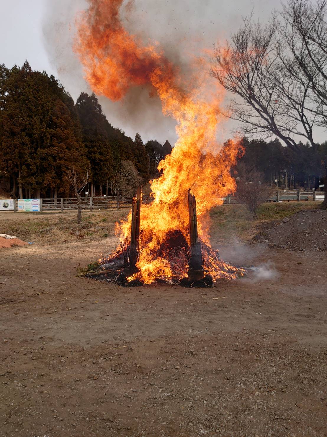 どんど焼き・・開催。 (皆様のお飾りが適切に燃え上がった報告)