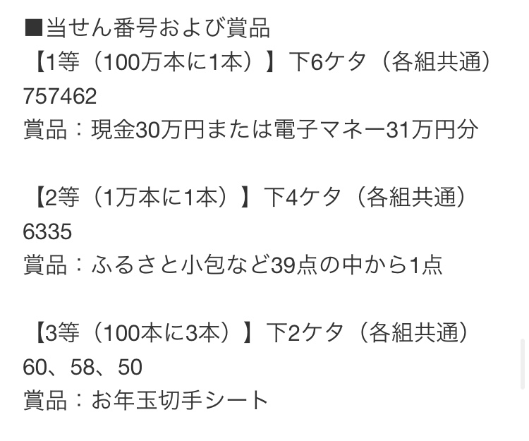 そう言えば年賀状の当選番号が出ましたね↓