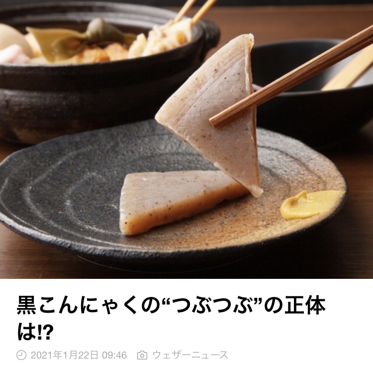 普通に売っているコンニャクの黒いツブツブは「海草」です。