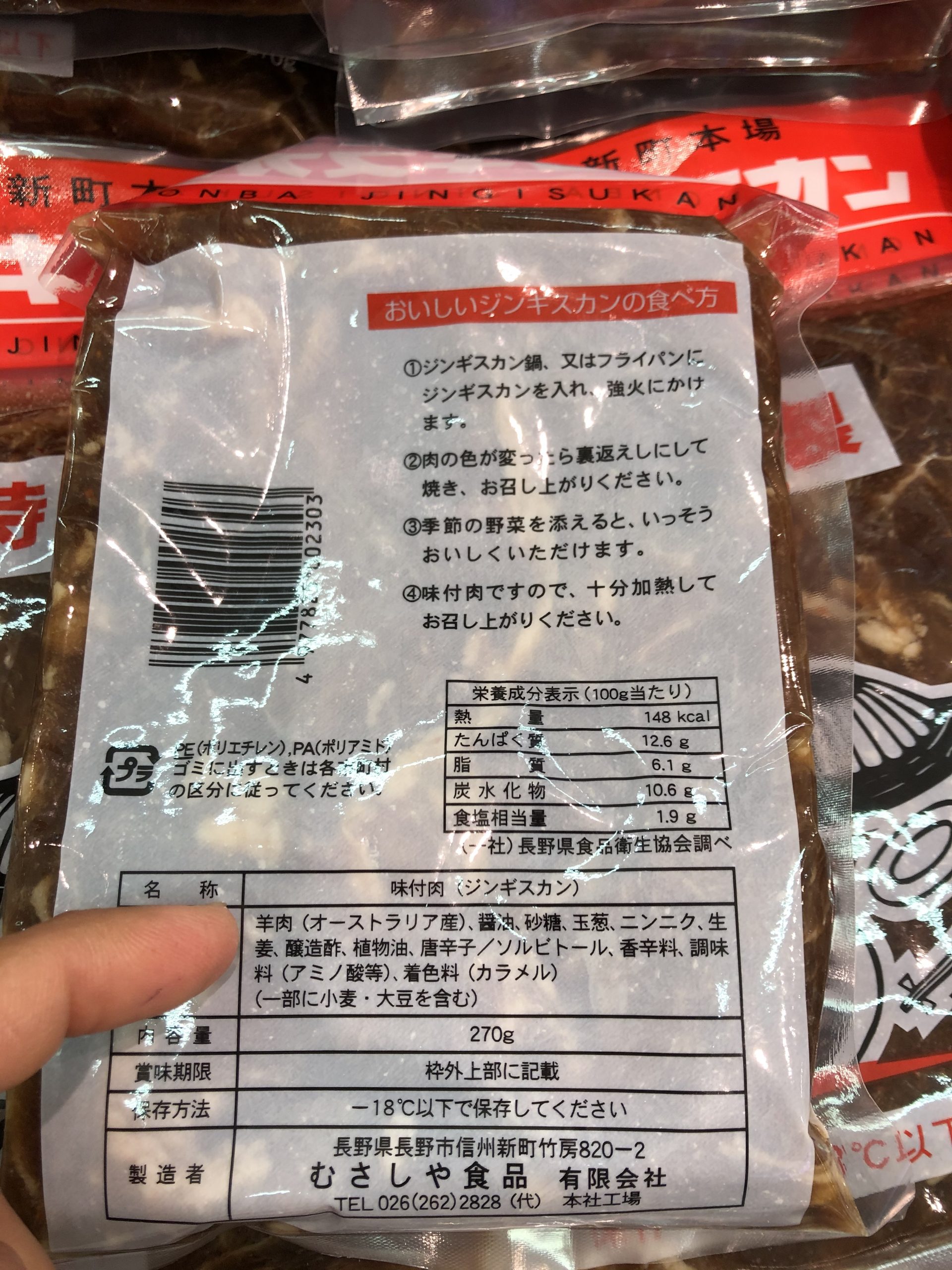 長野県の「信州新町 ジンギスカン」を売っていました。