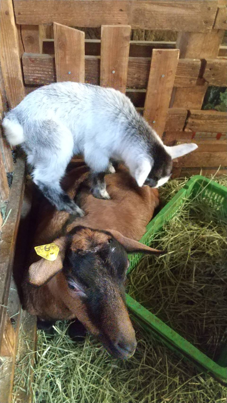 「よっしゃー!(おかあさん、ふたりでのぼってもいいって!)」