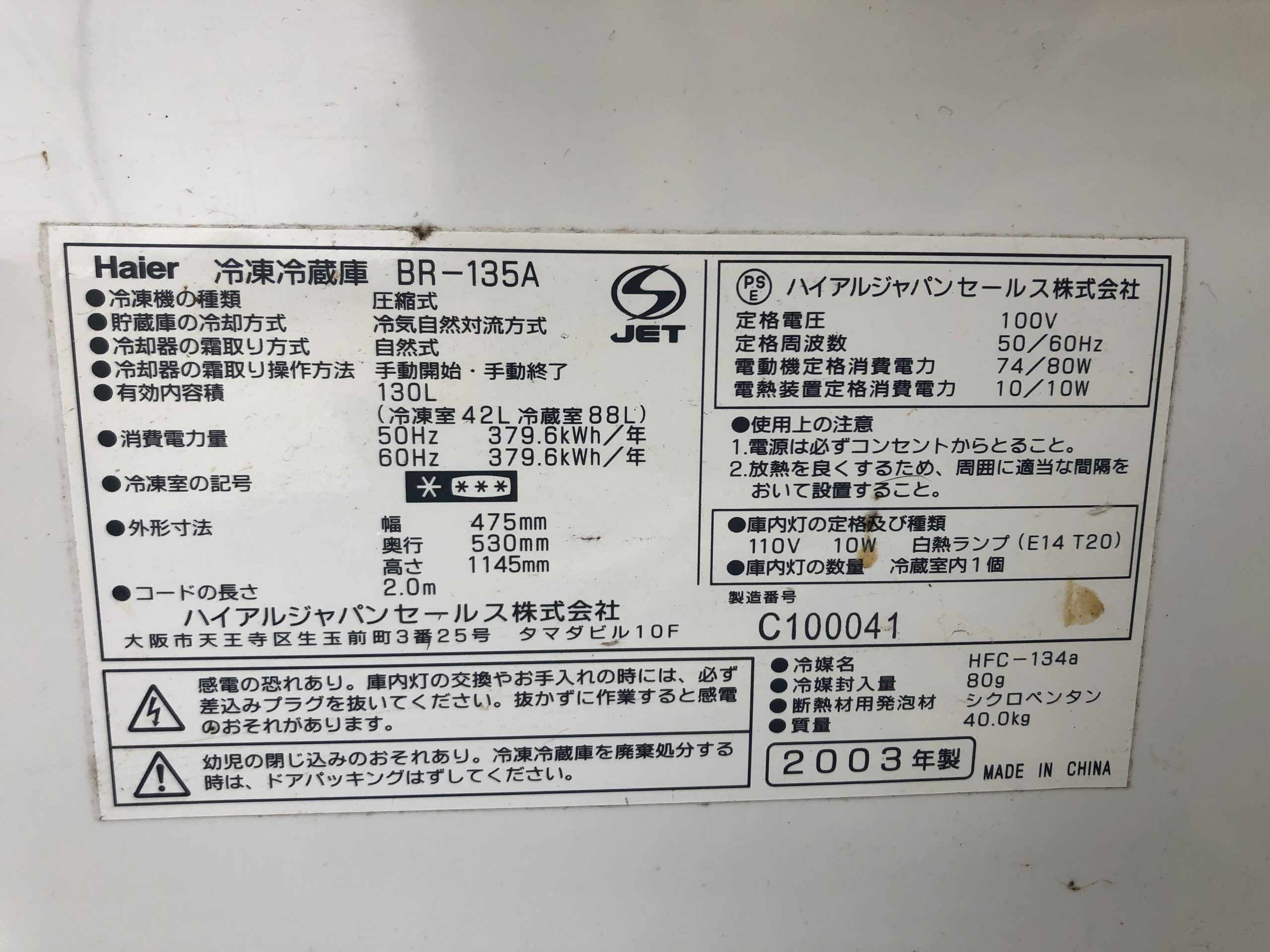 冷蔵庫は、必ず扉を開けた内側にこんな表示が貼ってあります。