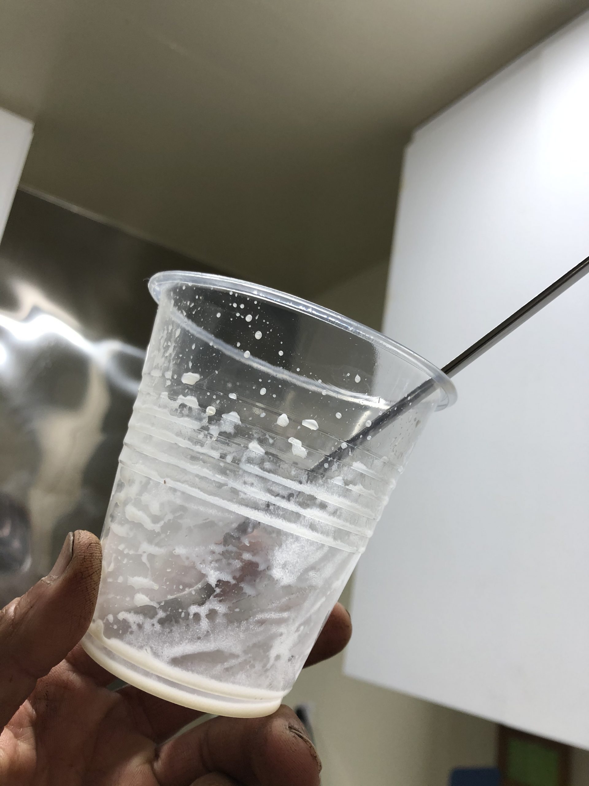 「自家製牛乳」+「凍ったバナナ」+「自家製ソフトクリーム」をミキサーで切り混ぜた商品を